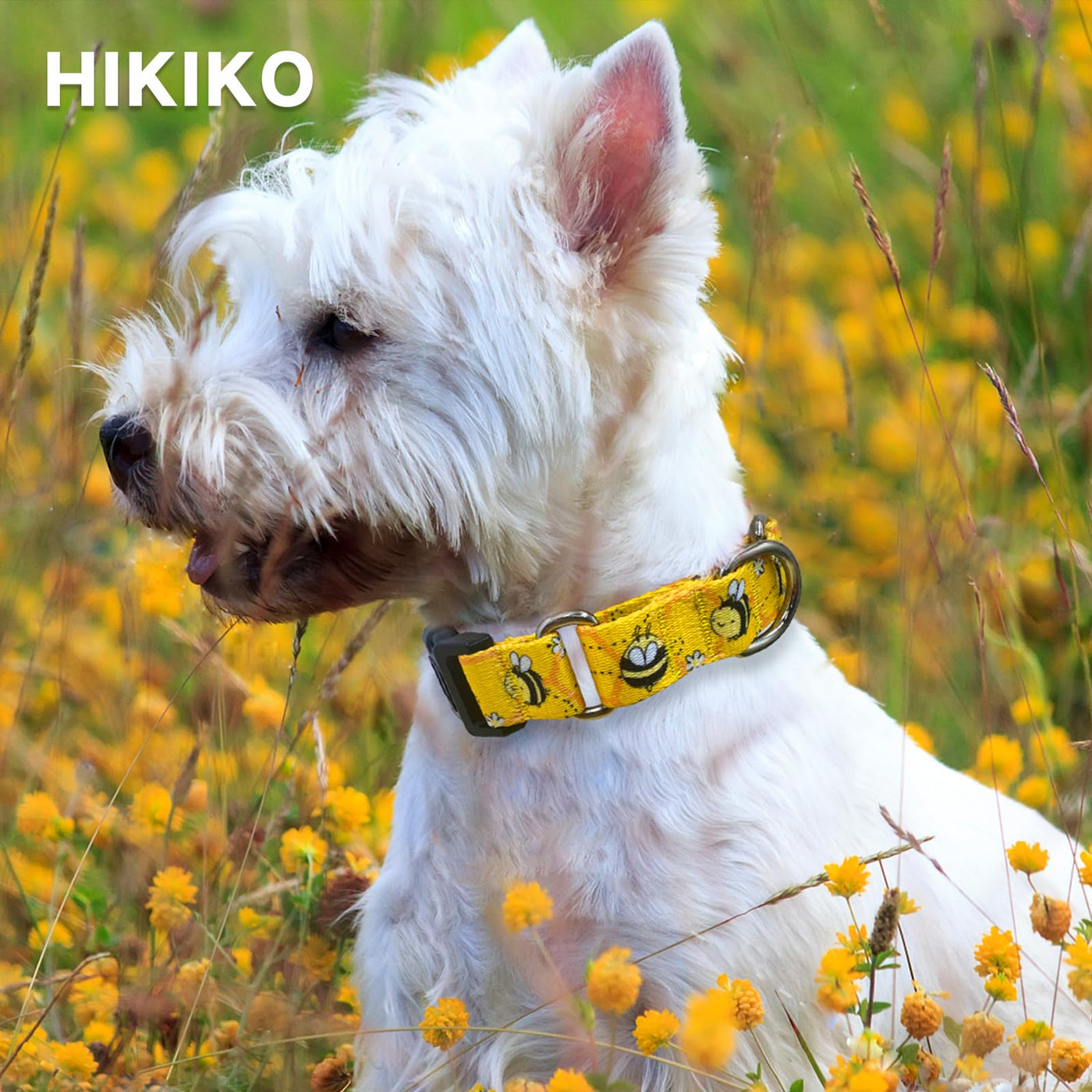 Hikiko Martingale Collar For Dogs Adjustable Soft Nylon Dog Collars With Cute Patterns For Small Medium Large Dog(Yellow Bee,Med