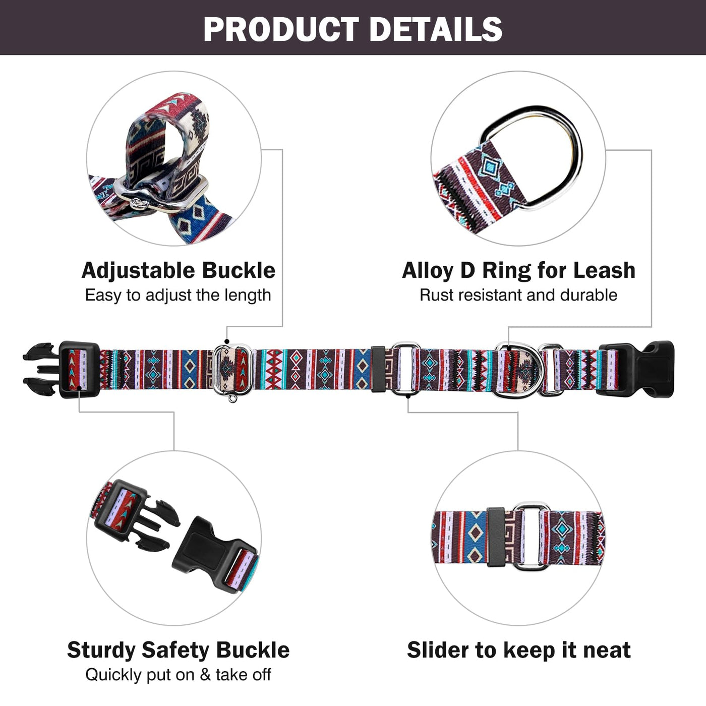 Hikiko Martingale Collar For Dogs With Bohemia Tribal Pattern Soft Nylon Strong Dog Collars For Small Medium Large Dogs Walking
