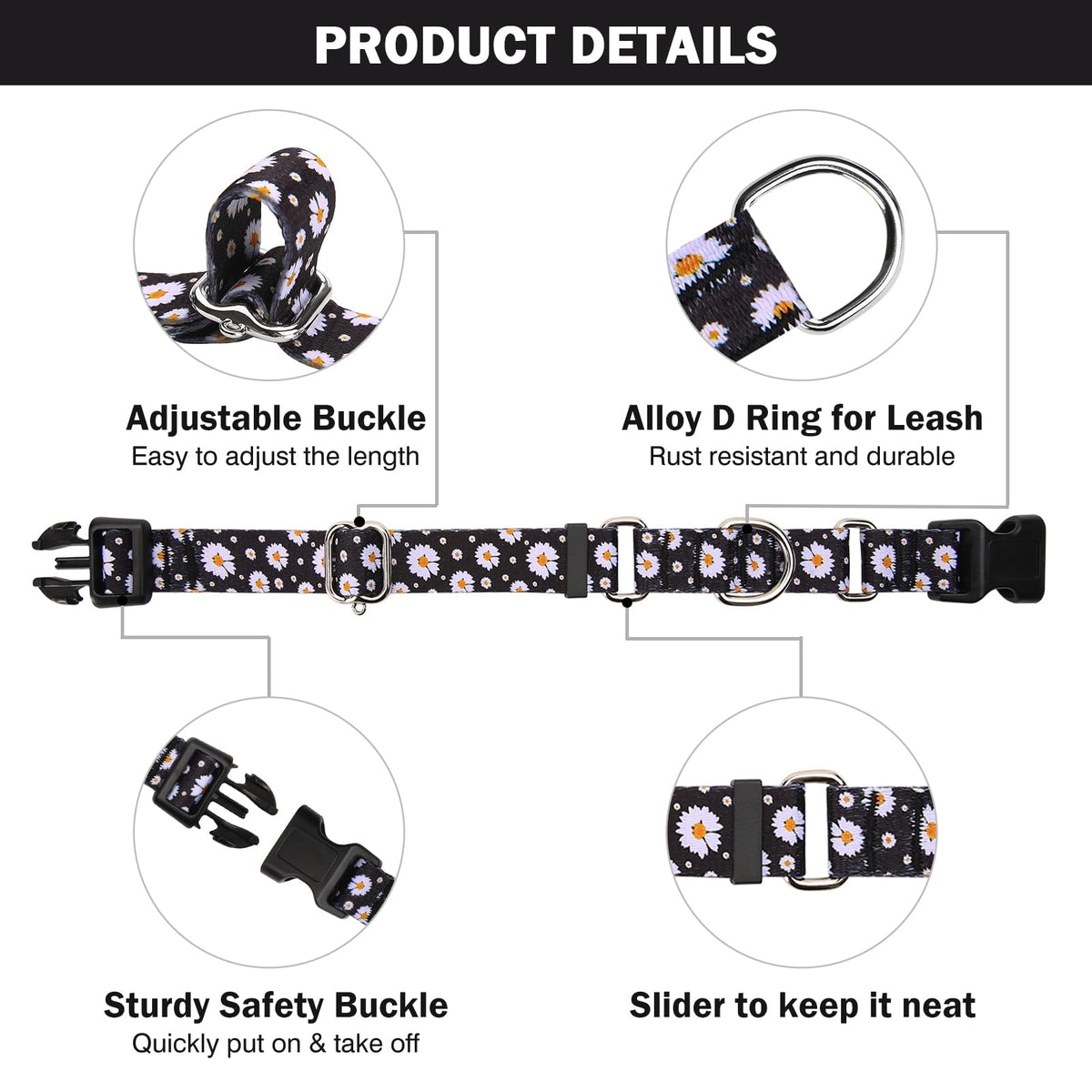 Hikiko Martingale Collar For Dogs With Buckle For Small Medium Large Dogs Soft Nylon Daisy Dog Collars Walking Training(Pure Dai