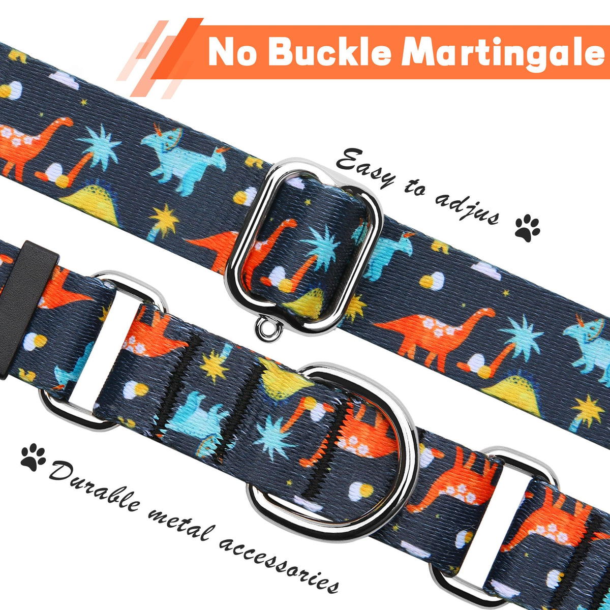 Hikiko Martingale Collar For Dogs With No Buckle Boy Male No Pull Dog Collars For Medium Dogs,Dinosaur,M