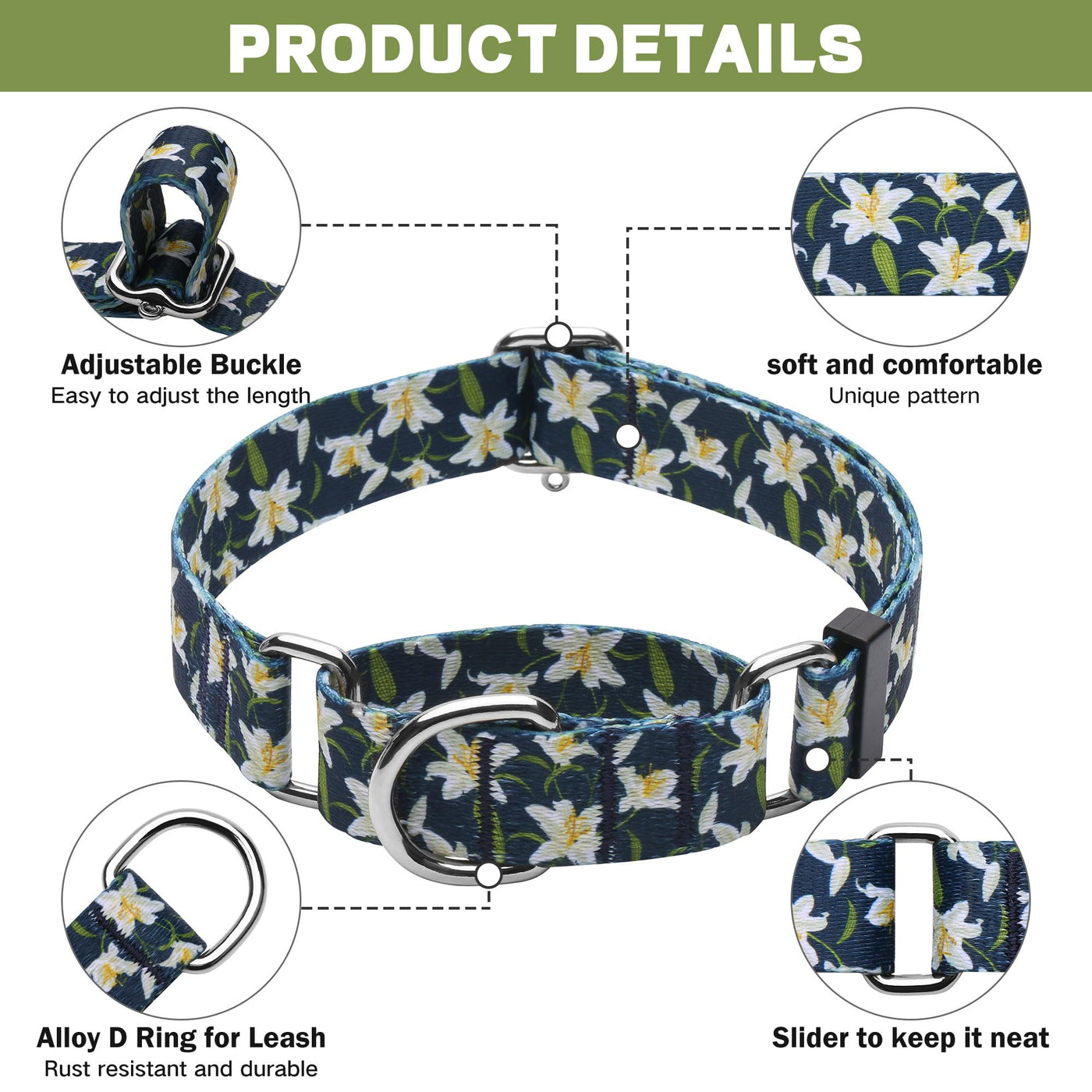 Hikiko Martingale Collar With No Buckle Cute Girl Female Floral Dog Collars For Large Dogs,Lily,L