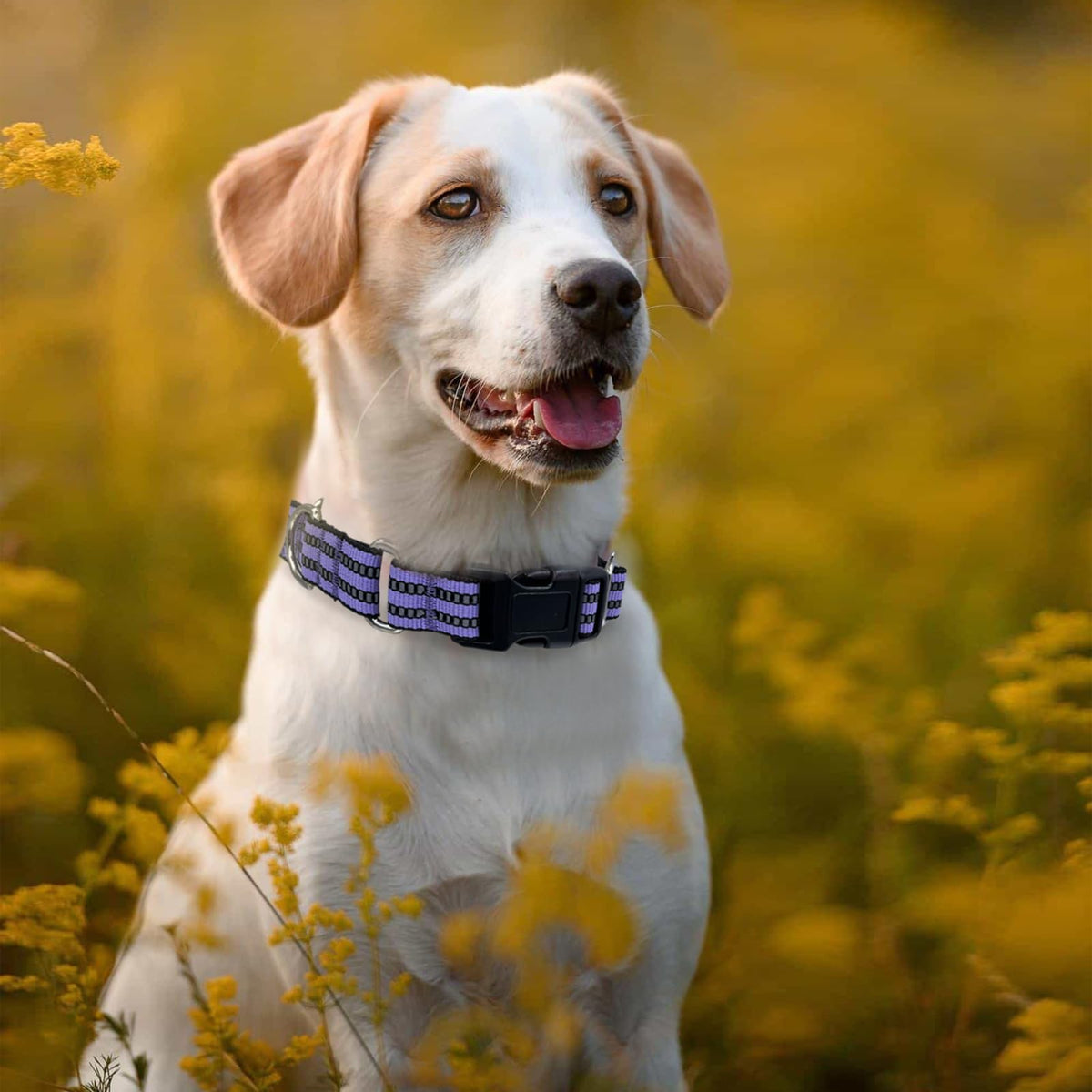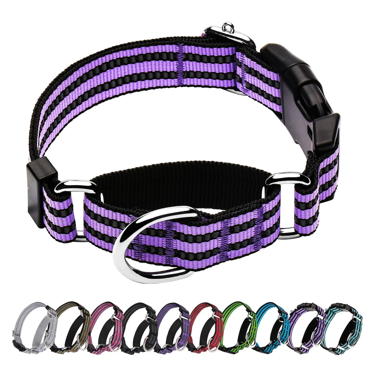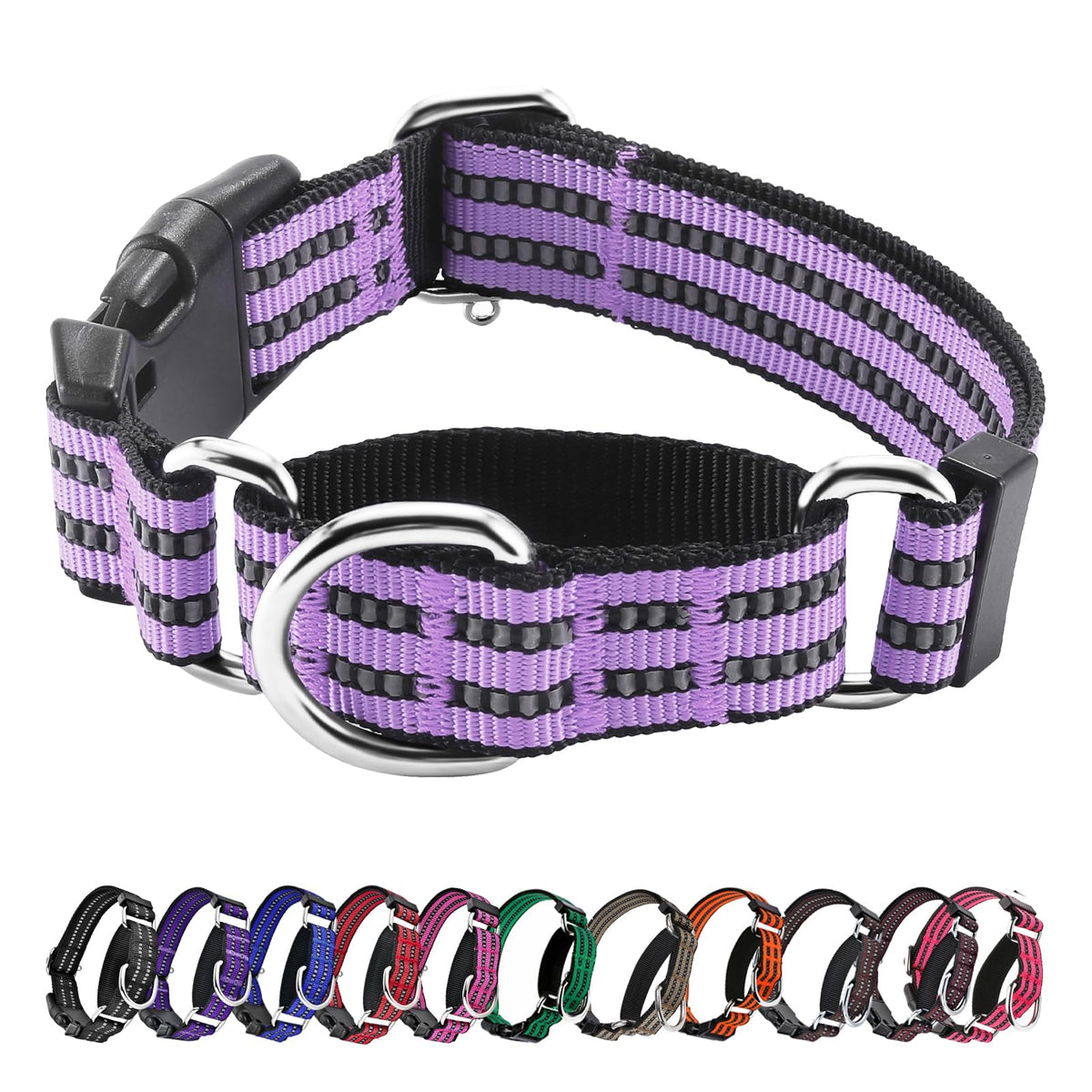 Hikiko Martingale Dog Collars Reflective Nylon Dog Collar With Quick Release Buckle Adjustable Training No Slip Dog Collar (Medium, Lavender)