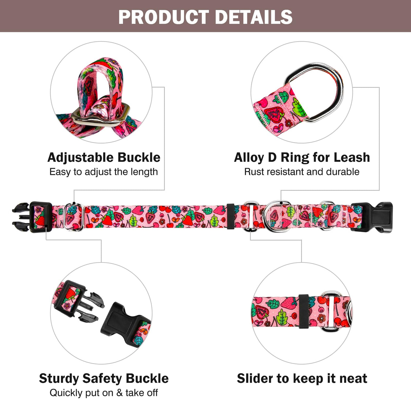 Hikiko Summer Dog Collar For Small Medium Large Dogs, Adjustable Nylon Fruit Pattern Martingale Collars With Quick Release Buckl