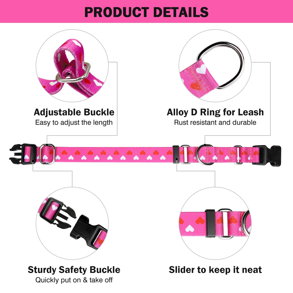 Hikiko Valentine'S Day Dog Collar For Small Medium Large Dogs Adjustable Heart Martingale Collars With Quick Release Buckle (Pin