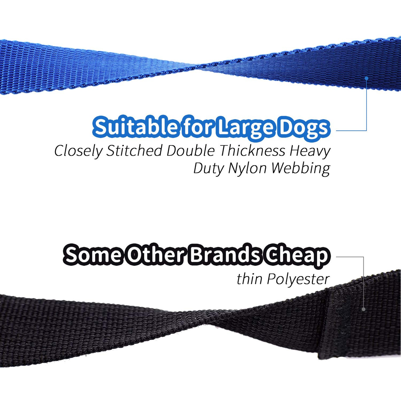 HEAVY DUTY - This training dog leash made with closely stitched double thickness heavy duty nylon webbing Nearly 2X Thicker than most leashes STRENgTHEN cLASP - Heavy duty rust resistant copper alloy clip suitable for mediumlarge breedsEasy on and easy off hook DIMENSIONS - This dog leash measures 1 inch wide by 15ft long great for hiking camping training hunting backyard beach recall training outdoor play with tennis balls and swimming LONg LEASH - This training leash is great for teaching your dog recalls It has the length needed to allow them to wander and ensure your command to come 100% MONEYBAcK gUARANTEE - No matter you and your dog not like this dog leash no problem get your money back or send you a new one