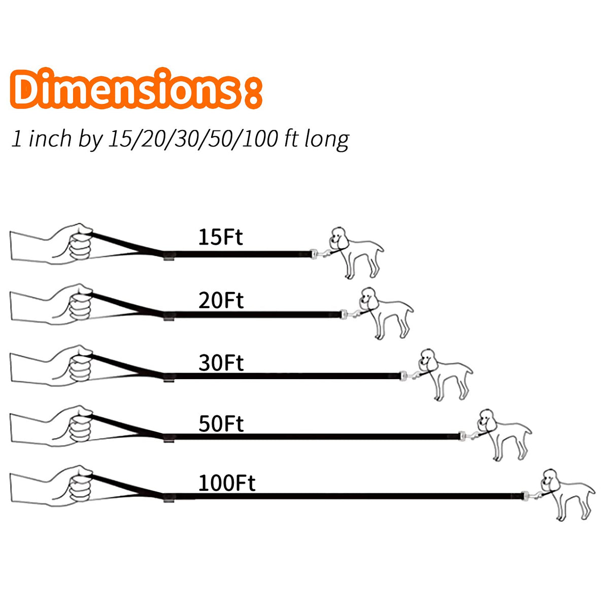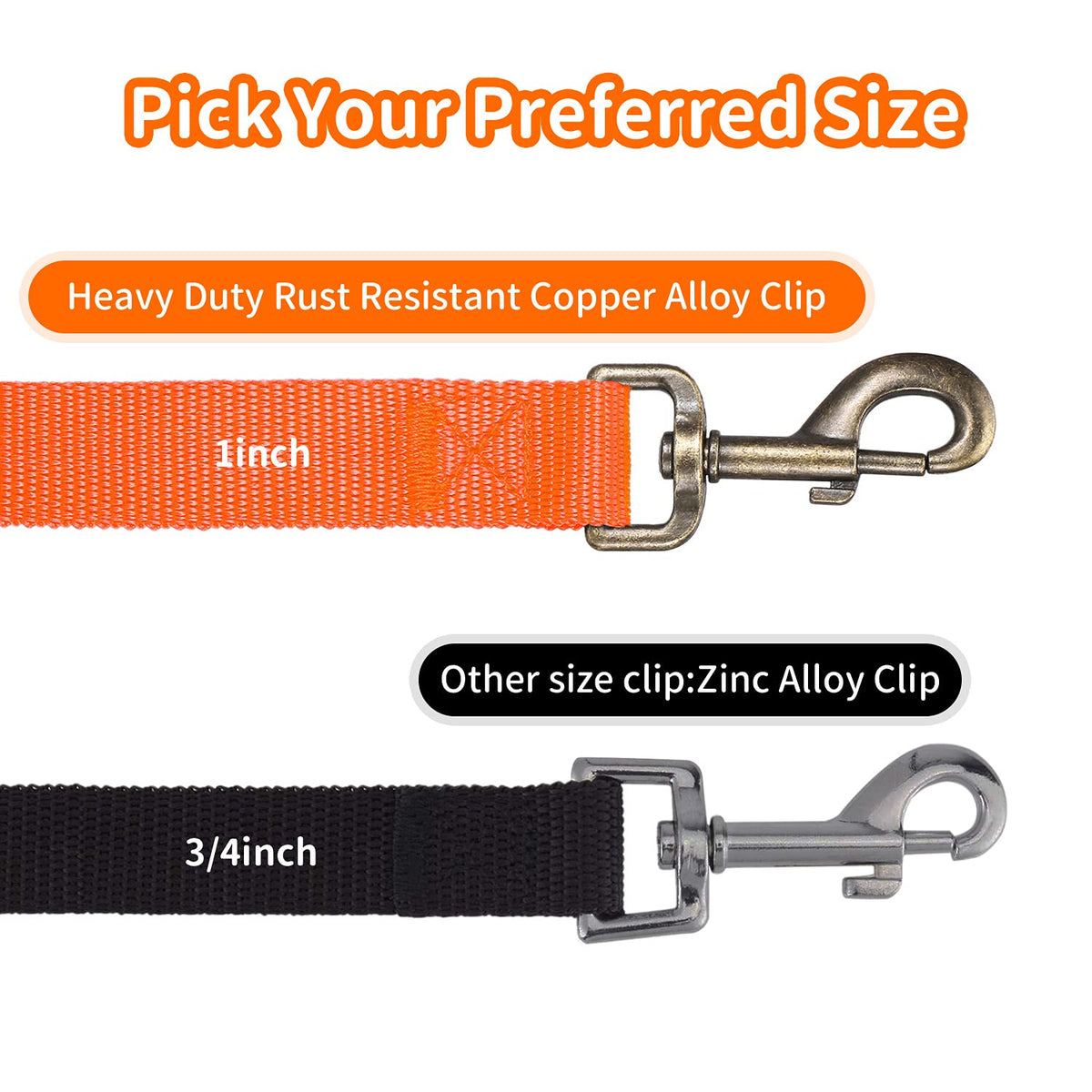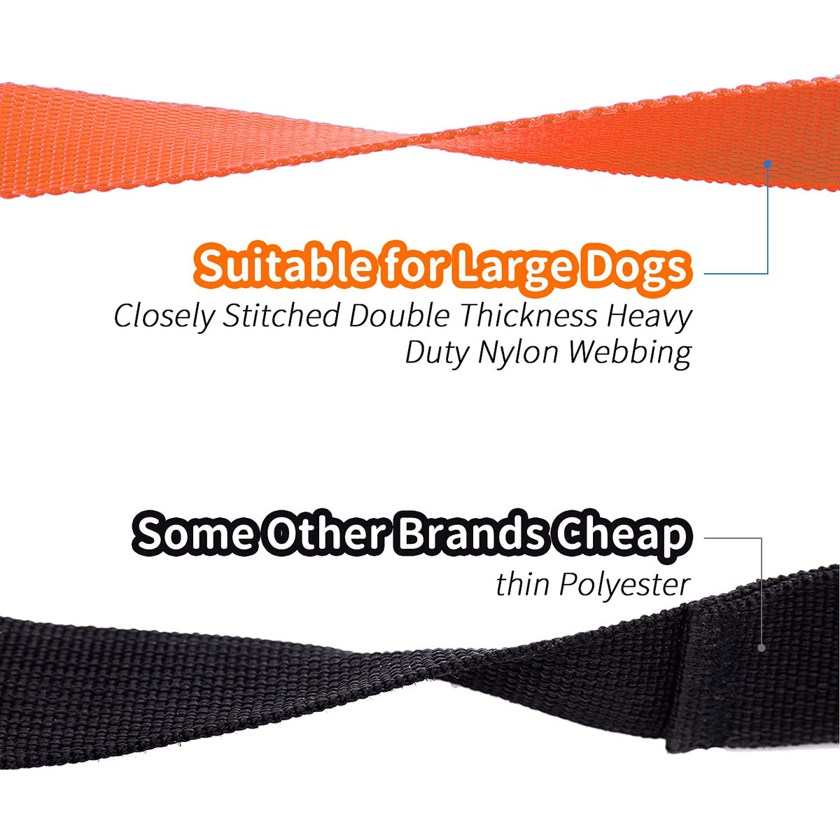 HEAVY DUTY - This training dog leash made with closely stitched double thickness heavy duty nylon webbing Nearly 2X Thicker than most leashes STRENgTHEN cLASP - Heavy duty rust resistant copper alloy clip suitable for mediumlarge breedsEasy on and easy off hook DIMENSIONS - This dog leash measures 1 inch wide by 15ft long great for hiking camping training hunting backyard beach recall training outdoor play with tennis balls and swimming LONg LEASH - This training leash is great for teaching your dog recalls It has the length needed to allow them to wander and ensure your command to come 100% MONEYBAcK gUARANTEE - No matter you and your dog not like this dog leash no problem get your money back or send you a new one