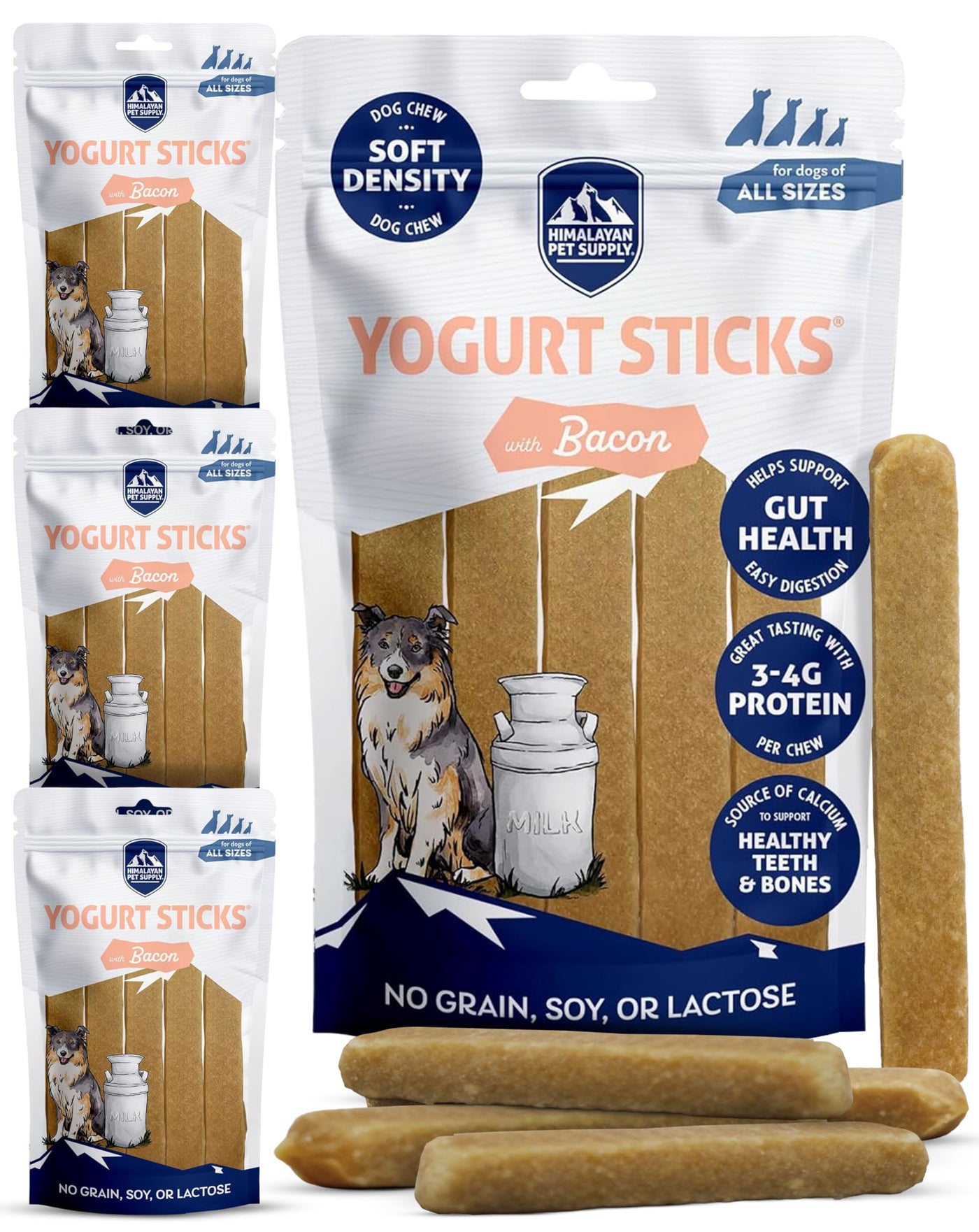 Himalayan Dog Chew Yogurt Sticks, Bacon Flavor, Dog Treats with Prebiotics, Probiotics & Protein, Digestive Support, Lactose & G