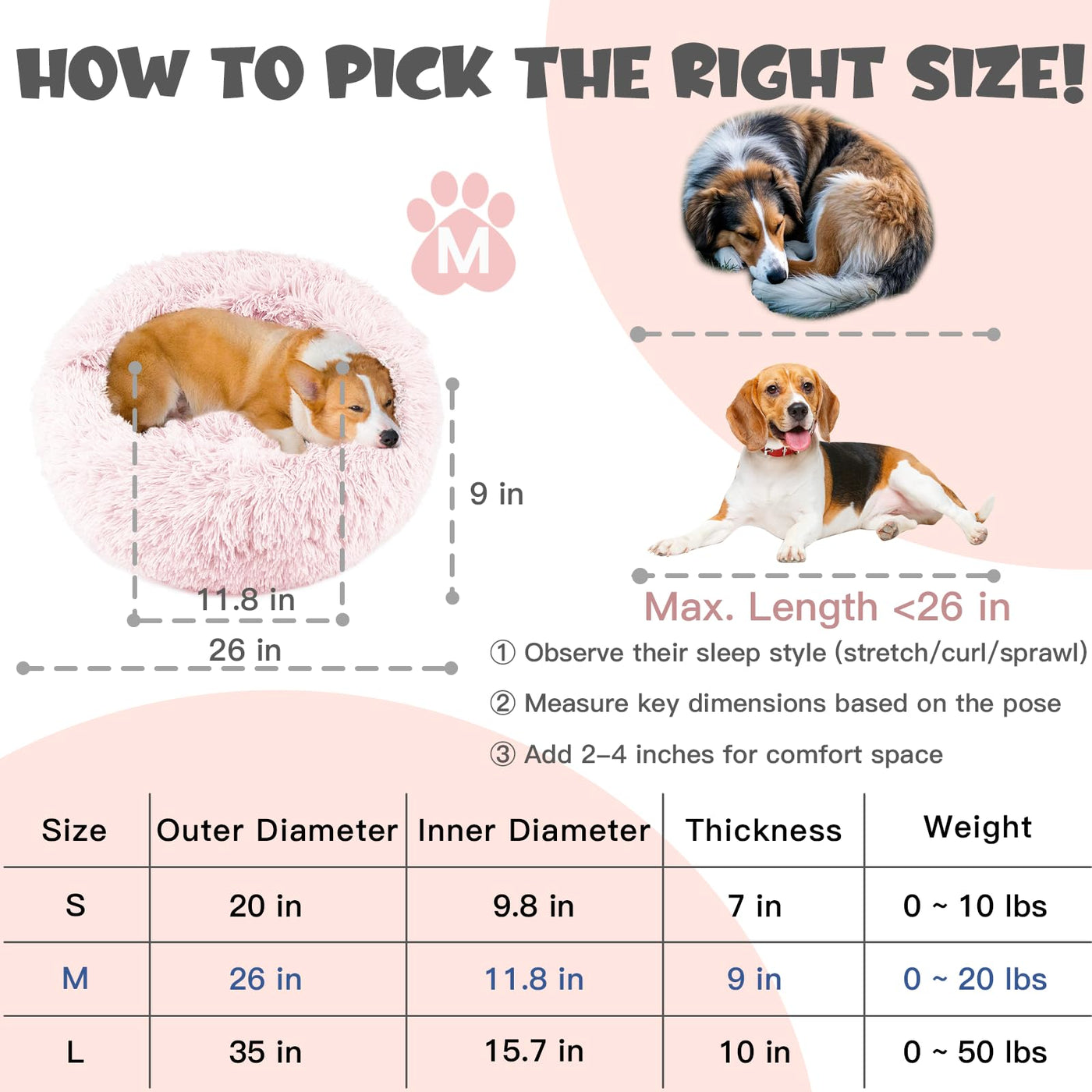 Himax Calming Anti-Anxiety Dog Bed For Medium Dogs With Attached Blanket - Pink, Fluffy, Washable (20/26/35)