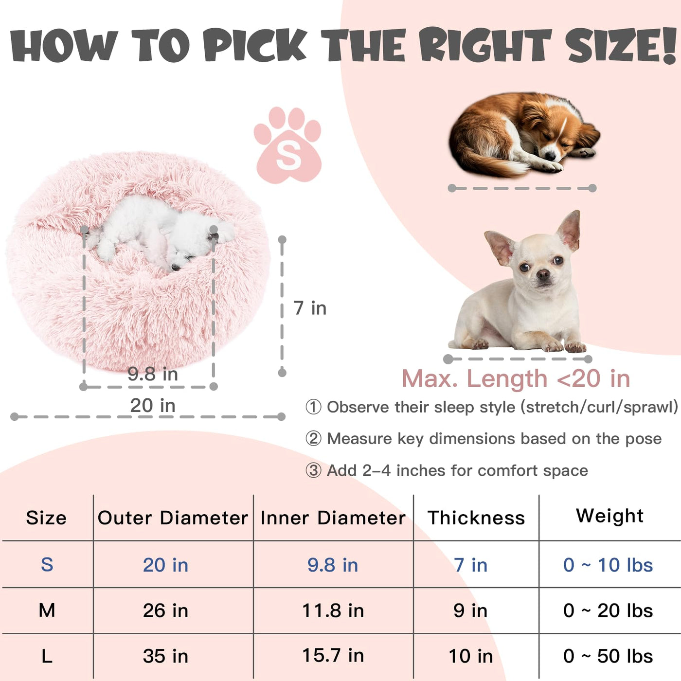Dog Bed With Blankets: The Specially Designed Hood Allows Pet Owners Not To Search For Blankets Everywhere. The Blanket Stitched On The Doughnut Dog Bed Is Larger Than The Bottom Of The Doughnut Shape. For Example, Our Small Cat Bed Has A Diameter Of 20 Inches And A Width Of 28.9 Inches. The Larger Stitched Blankets Provide Pets With Their Own Private Space, Which Is A Perfect Gift For Pets Who Like To Hide Or Burrow. Meanwhile, You Can Choose The Use Methods Of Blankets: Tuck It In Or Cover It.