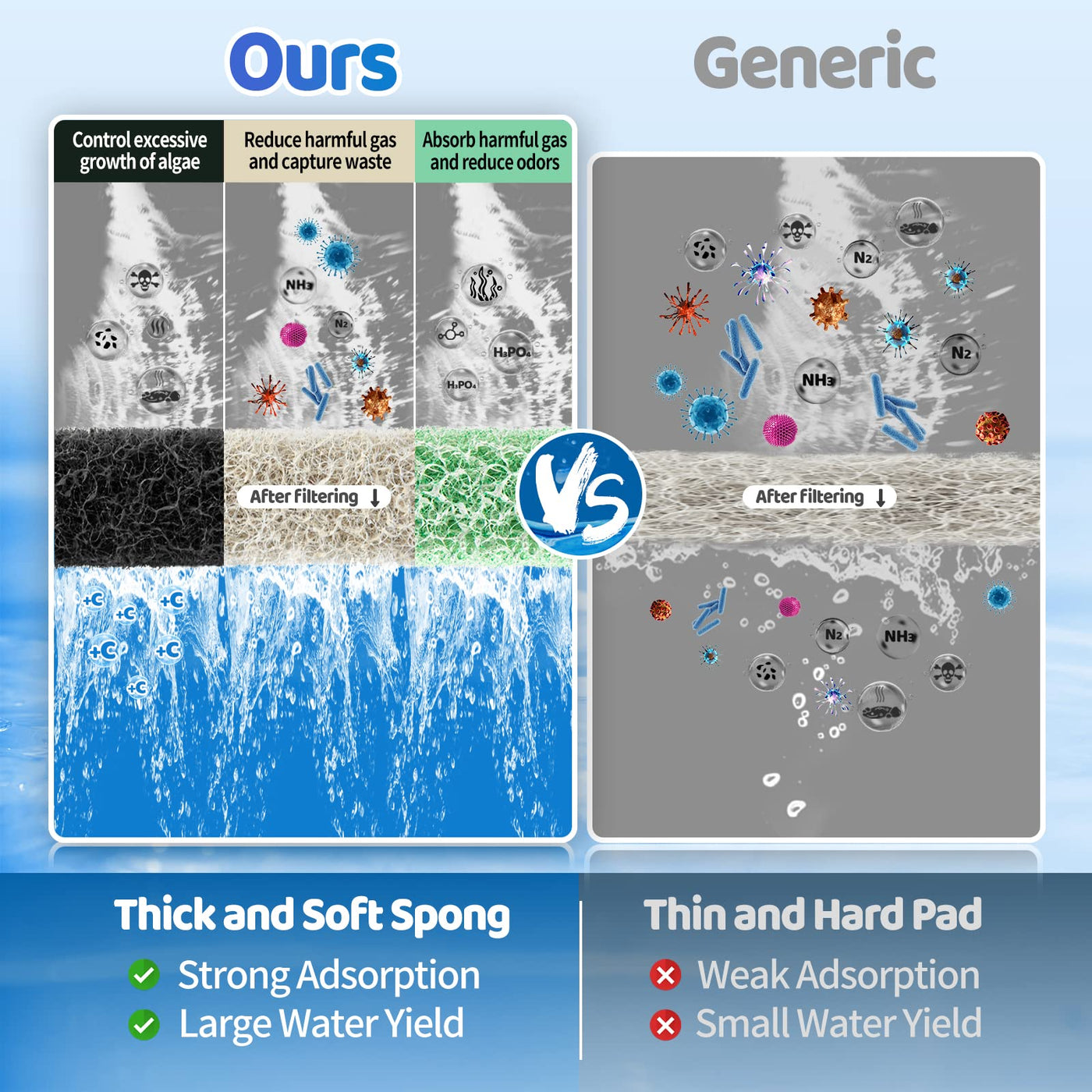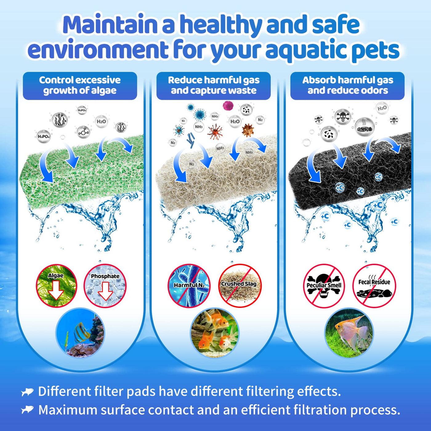 Hitauing 12 Count Mixed Pack Filter Pads For Aqueon With Ammonia&Carbon&Phosphate Reducer, Fish Tank Filter Pads For Quietflow L