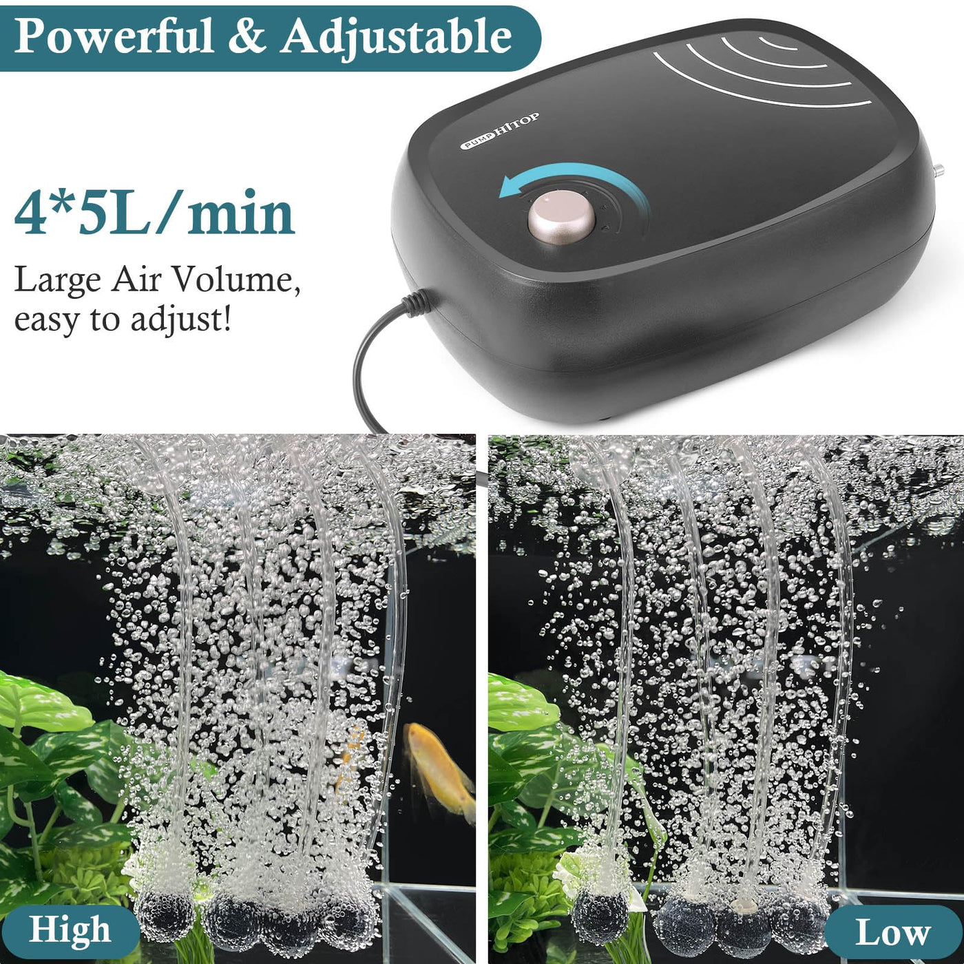 Hitop 10W Powerful Aquarium Air Pump: 4-Outlets 320Gph Air Pump For Fish Tank, Quiet Aquarium Aerator With Completely Accessorie