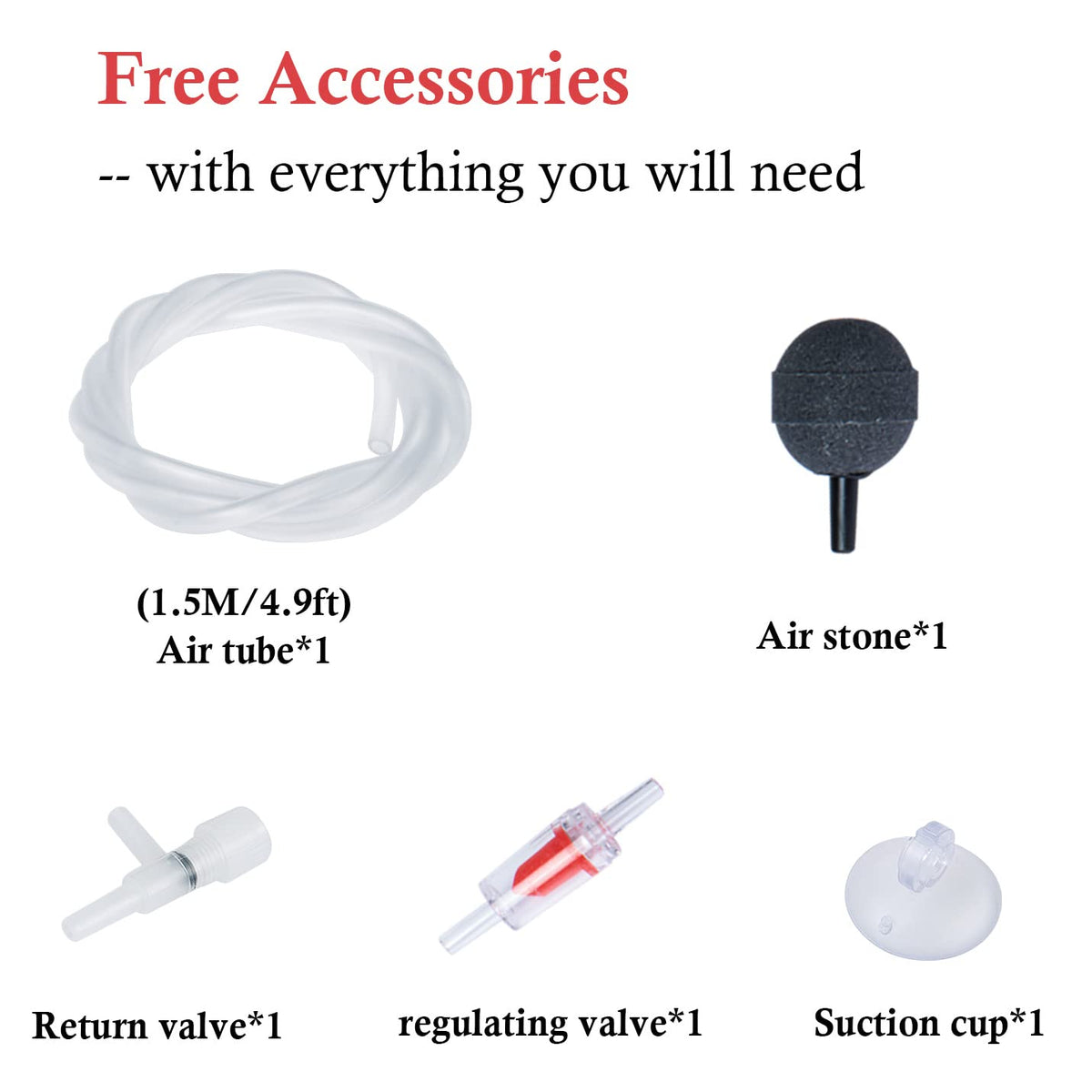 HITOP Single Outlet Aquarium Air Pump, Fish Tank Aerator with Accessories, Quiet Oxygen Pump for Small Tank up to 15gallon (Sing