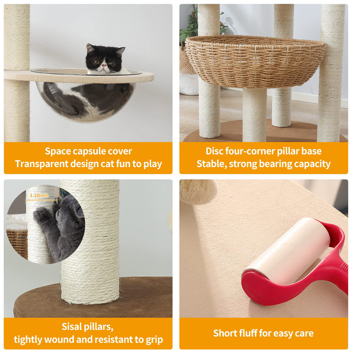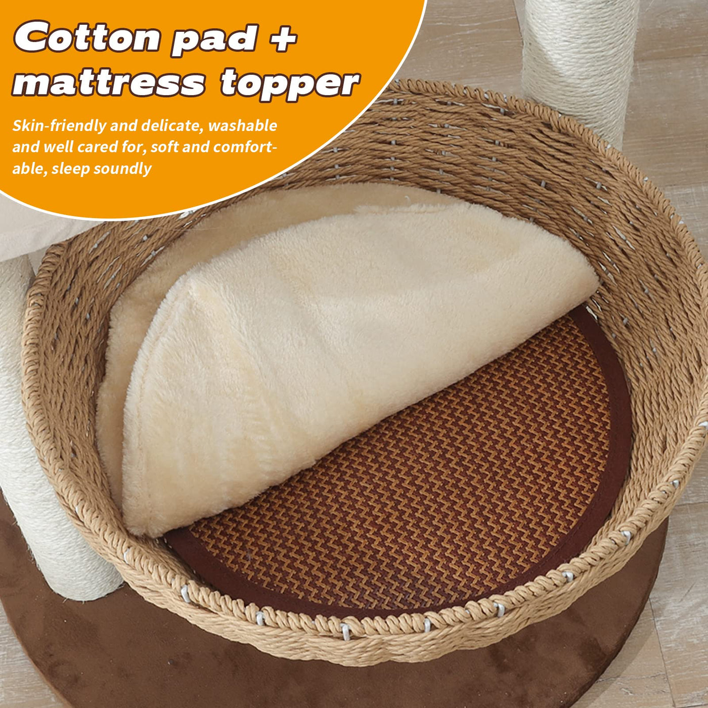 Hiyong Modern Tree Tower For Large Cats - Natural Sisal Luxury Condo, Hand Woven Wood Tower, Indoor Scratching Tree, New Lover G