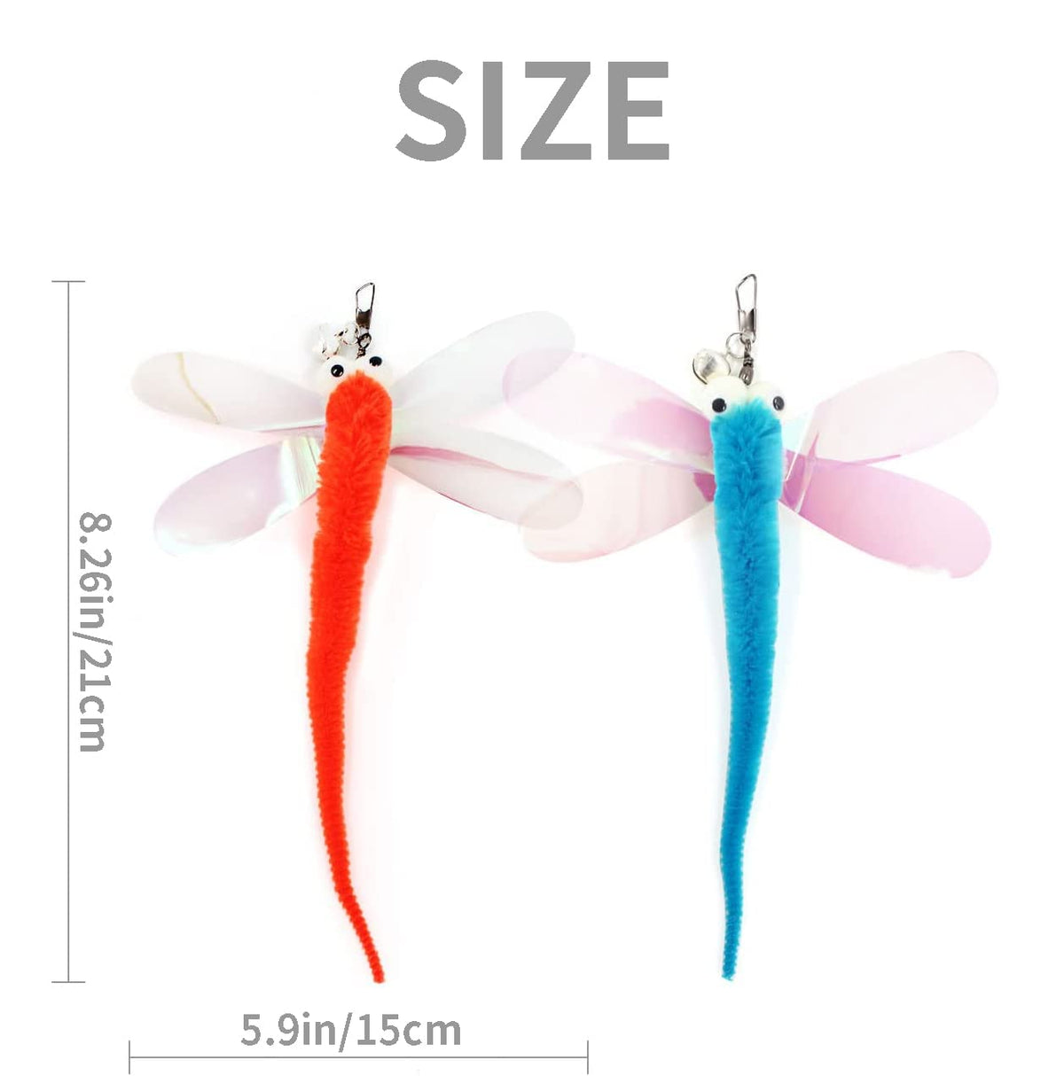 Hokoad Cat Big Eye Dragonfly Toys Replacement Cat Toy Wand Refills, 6 Pieces Big Eye Dragonfly Cat Toy Feathers Refill, Interact