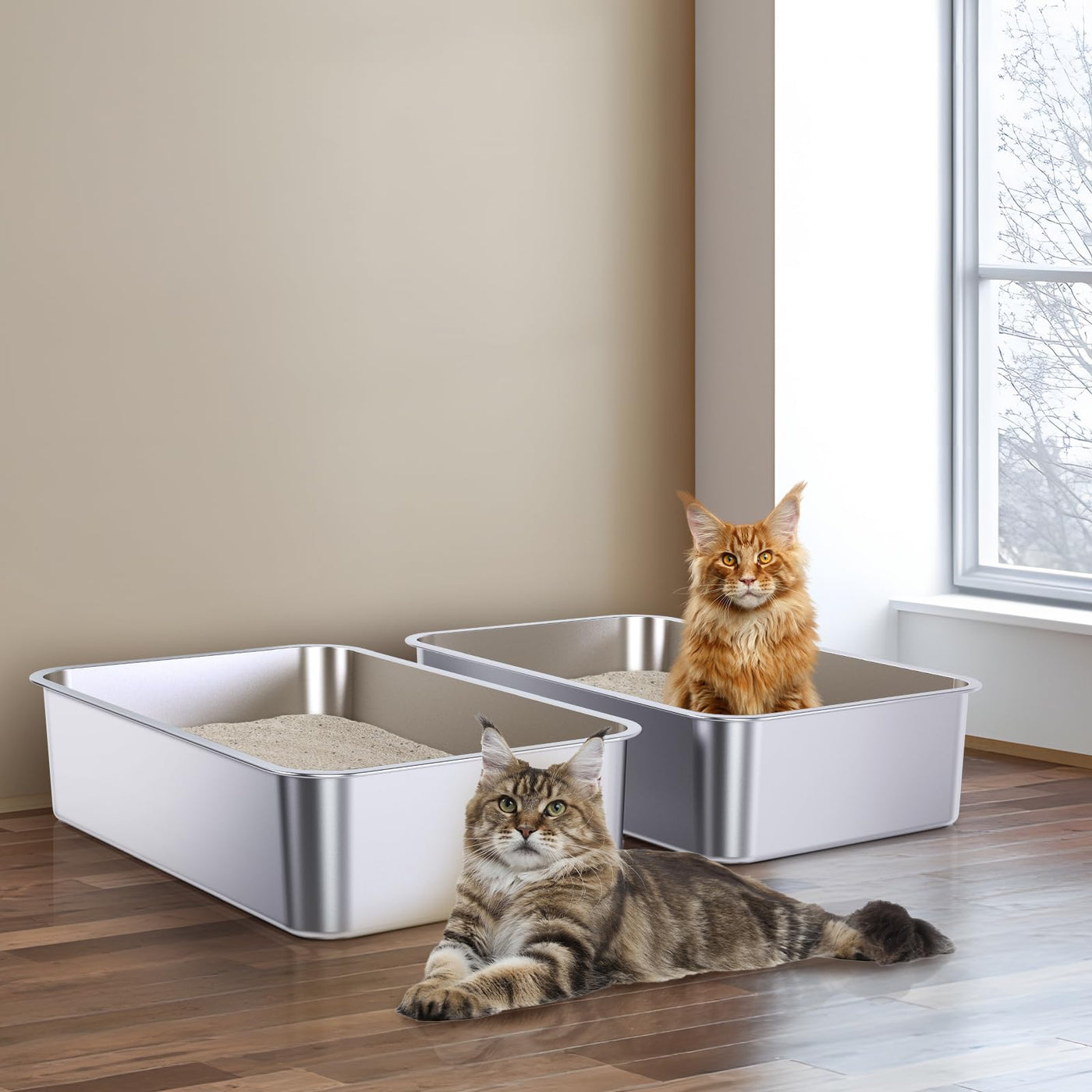 Holintan Stainless Steel Litter Box, 23.6''X15.7''X6''(Height) Metal Litter Box 4 Pack,Easy To Clean,Non Stick No Smell Steel Ca