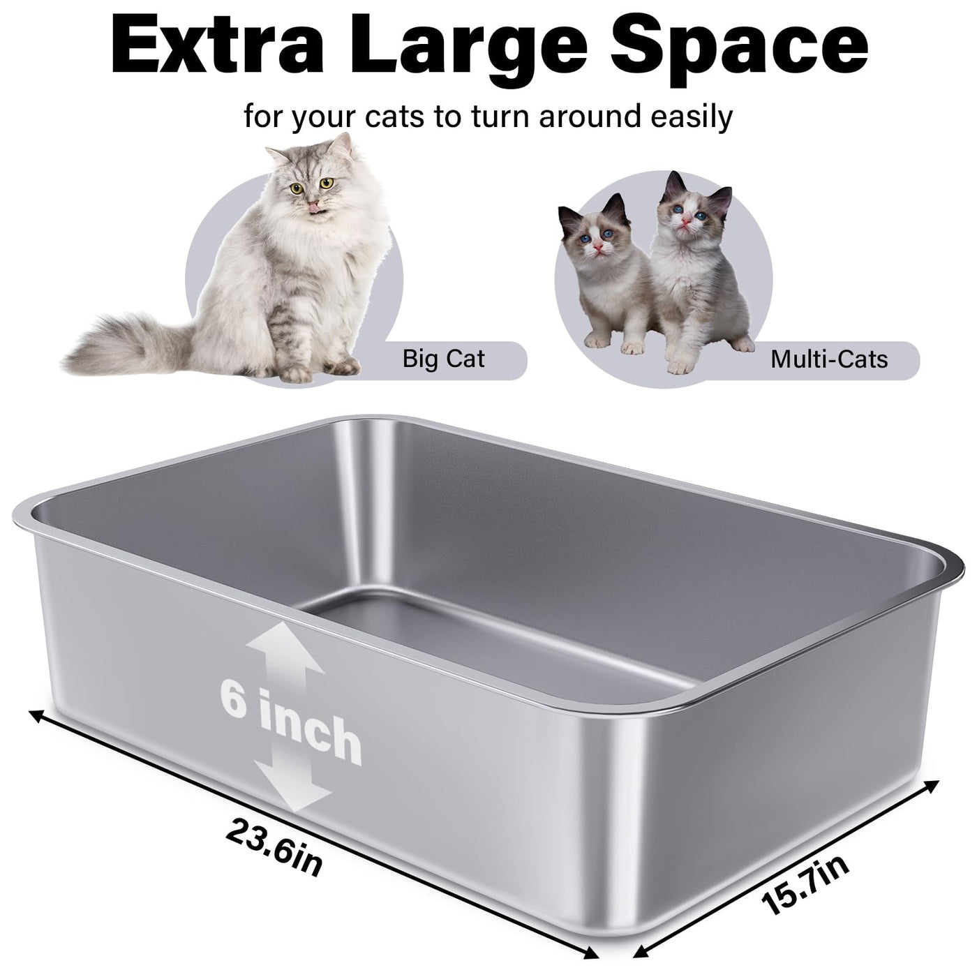 Holintan Stainless Steel Litter Box 3 Pack, 23.6'' X 15.7'' X 6'' Extra Large Cat Litterbox No Smell, Xl Metal Litter Box For Bi