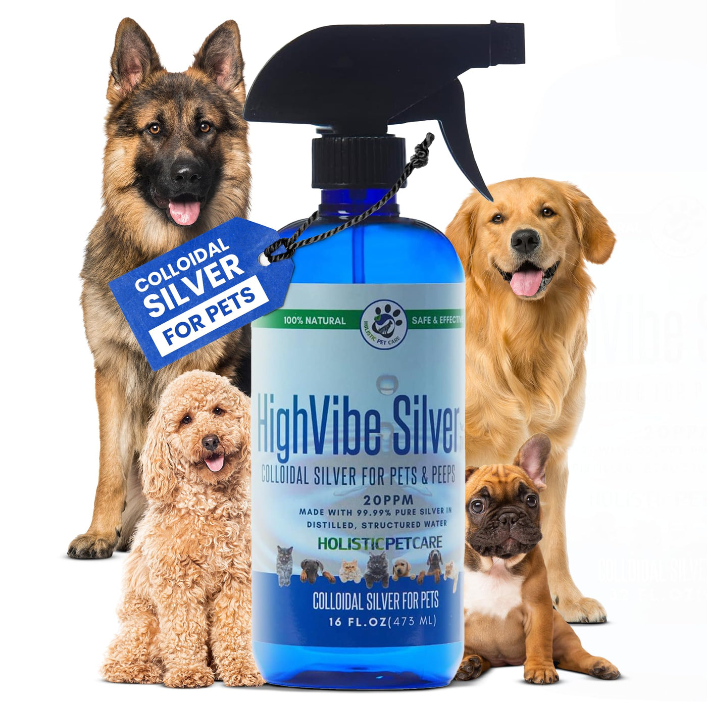 Holistic Pet Care Colloidal Silver For Dogs, Cats, Horses & Birds - 20 Ppm Wound Care, Hot Spot Treatment, Skin Relief & Immune