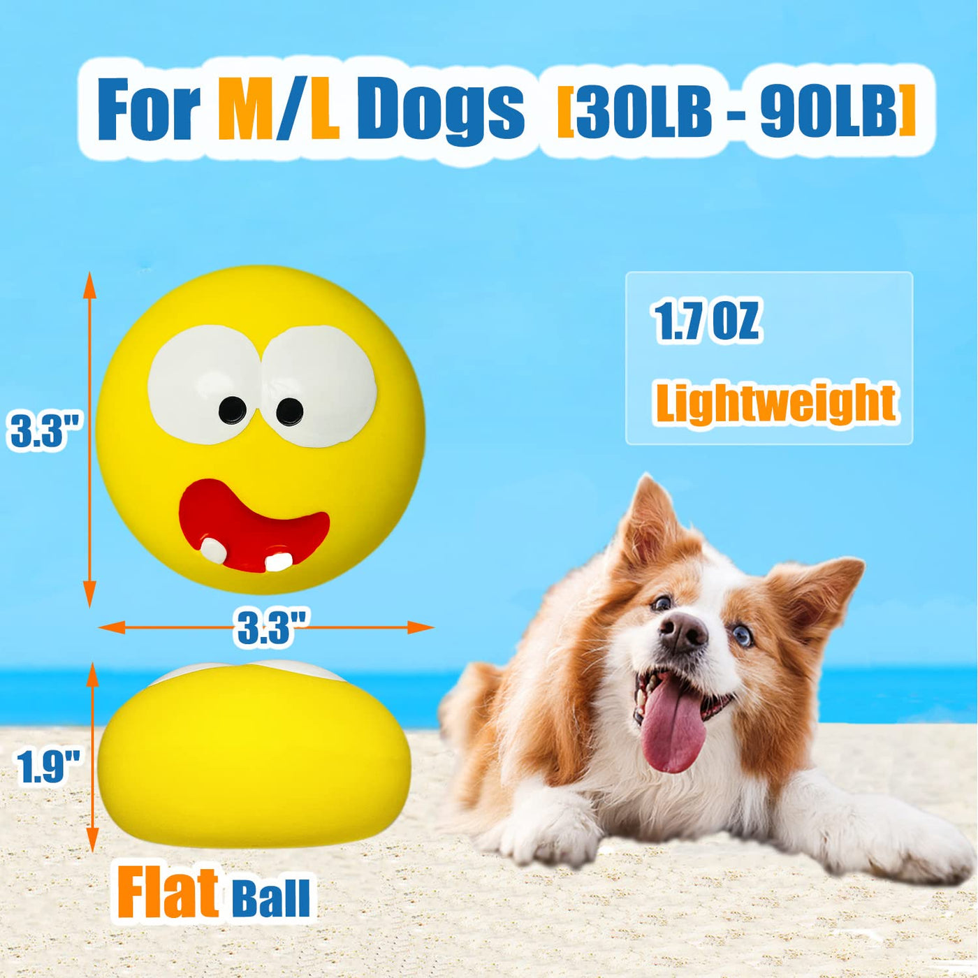 HOLYSTEED Squeaky Dog Toys for Medium & Large Breeds, Stuffed Latex Balls, Yellow, 2pcs Puppy Flat Ball with Smile Face