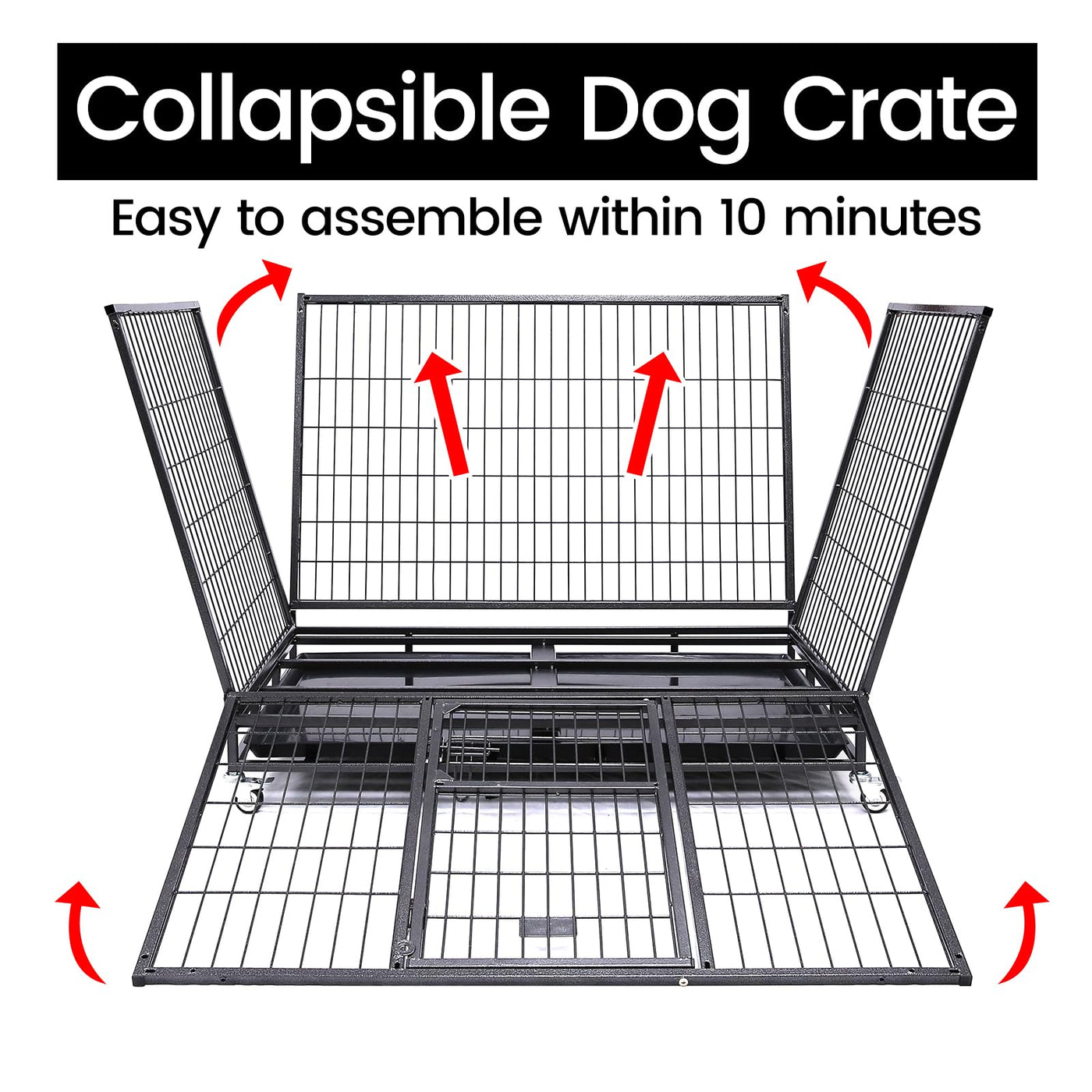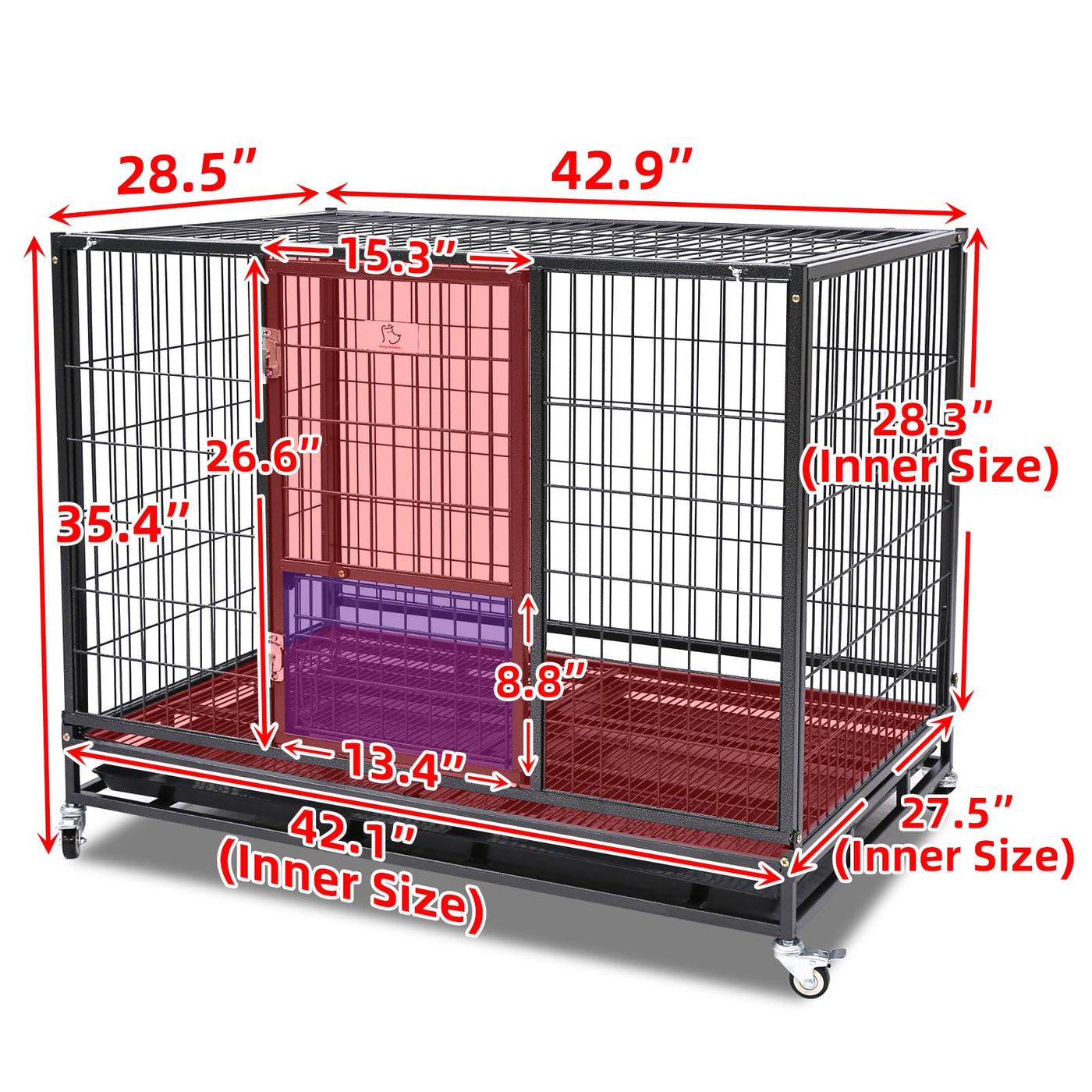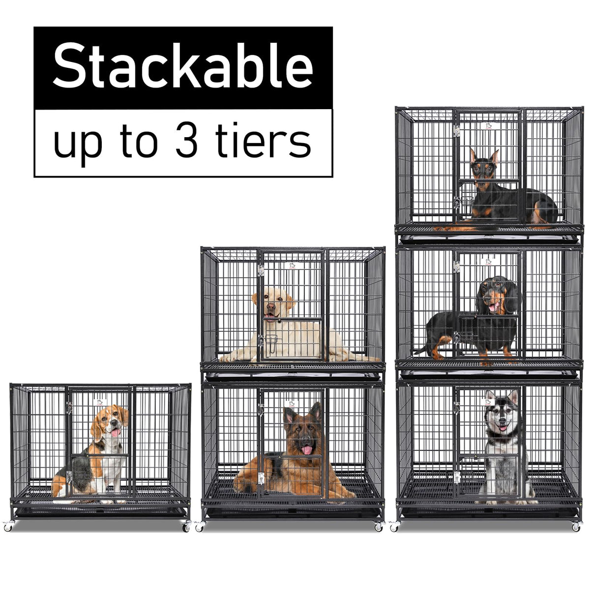 Homey Pet 43 Stackable and Collapsible Heavy Duty Dog Crate Cage Kennel with Feeding Door, Four Lockable Casters, Removable Tray