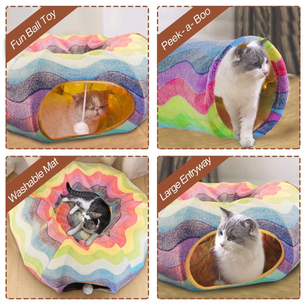 Homeya Cat Tunnel Bed With Mat,Collapsible 3 Way Cat Play Tube Condo Toy With Peek Hole Fun Ball Indoor Outdoor Soft Hideout Exe