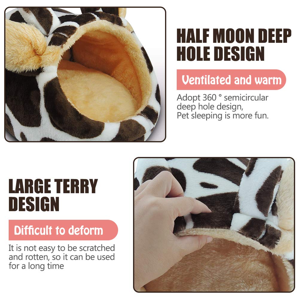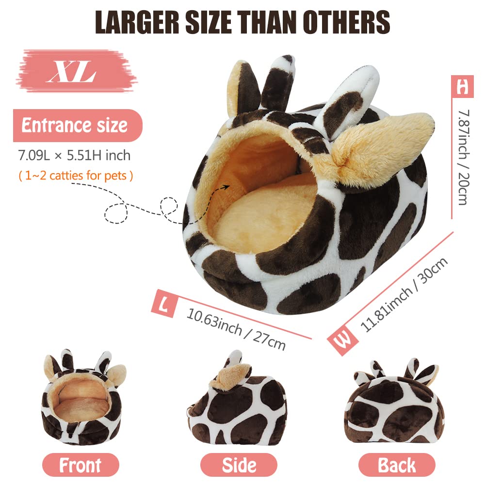 SOFT WARM WINTER FLEEcE] -High-grade short plush fabric material provide a comfortable warm hut for sloth napping sleeping and play for them especially in winterA perfect cute snuggle spot for your pets to to find the perfect sleeping position ensuring they wake up refreshed promoting better behavior during the day gREAT gIFT FOR YOUR LOVELY PET ]-comfy bed for your favorite pet comfortable house for small animals such as guinea-pig Hamster Rat Hedgehog chinchilla Sugar glider Mice Bunnies gerbil Degu Little Rabbit Amphibian Snakes Spiders Lizards or other small pet animals EASY TO cLEAN & MAINTENANcE]-When it comes to unavoidable accidents theres no need to worry The pet padded cushion is removable and the entire bed is safe to machine wash and dry Do not tumble dry to keep its bear shape LARgE ENTRANcE FOR ANY SMALL PET]- With an open entrance design brings sense of security To Rest Play or Sleep nothing is more important than a safe shelter for the sensitive little pet even if you already have the cage they still need this hideaway to relax VERSATILE PET HOUSE]-cute cartoon design with non-skid bottom surfacePrevents the bed from shifting and moving when your pet steps on or off even on hardwood floors You can set up at home (living room porch balcony) or take along with you on trips cookouts picnics and anywhere else - 114L*114W*118H-XL Size