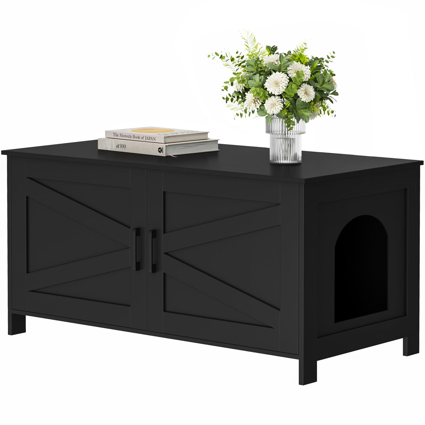 Homhedy 39.4'' L Cat Litter Box Enclosure, Pet House With Barn Door, Wooden Cat Washroom Furniture,Fit Most Of Litter Box, Black