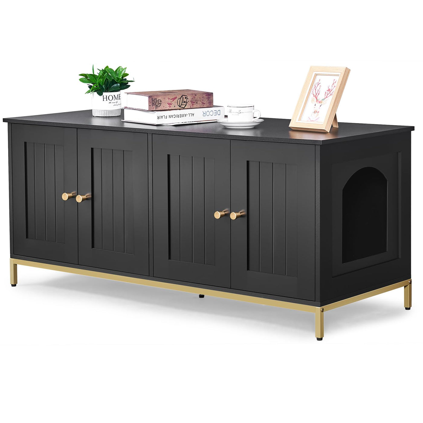 Homhedy Cat Litter Box Enclosure for 2 Cats, Litter Box Furniture Hidden with Double Room, Cat House, 47.2 L x 17.7 W x 21.7