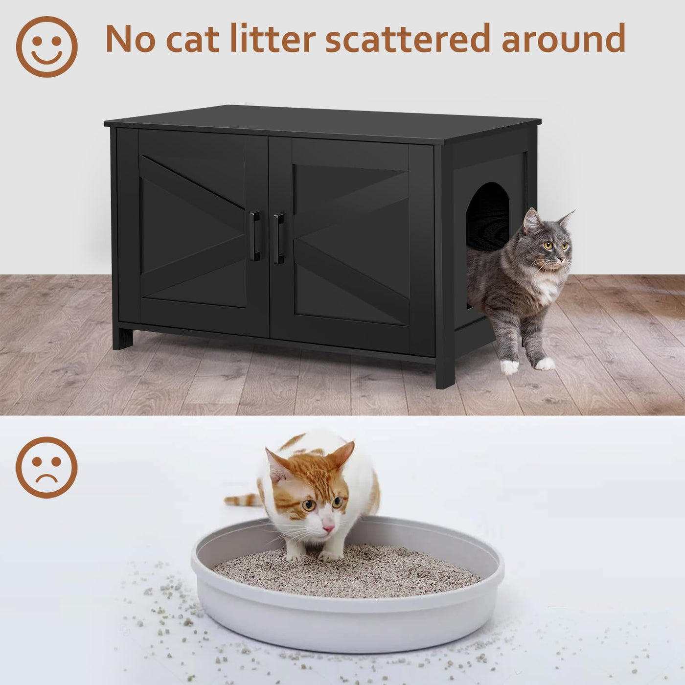 Homhedy Cat Litter Box Enclosure, Wooden Cat Washroom Furniture With Barn Door, Pet House, Fit Most Of Litter Box, Black