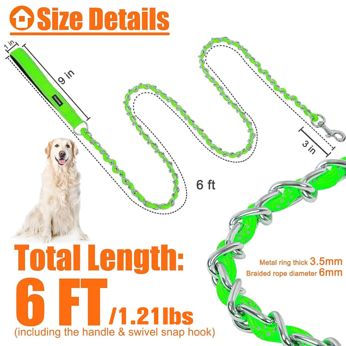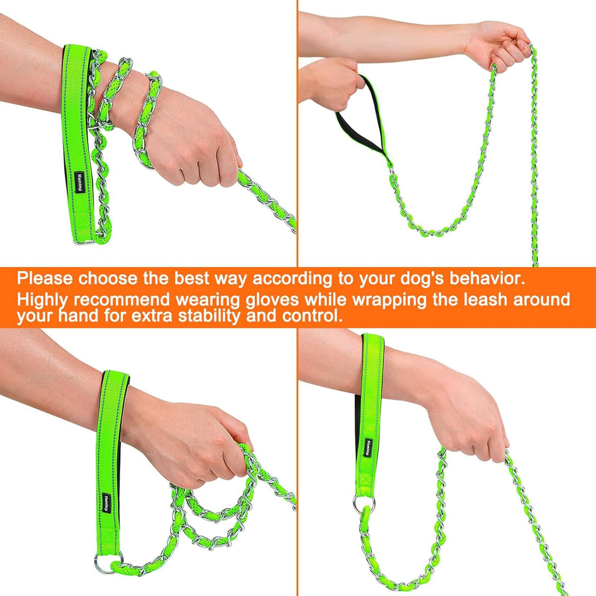 Homimp Chew Proof Dog Leash For Medium Large Dogs, Reflective 6 Ft Heavy Duty Metal Chain Dog Leashes With Soft Padded Handle, A