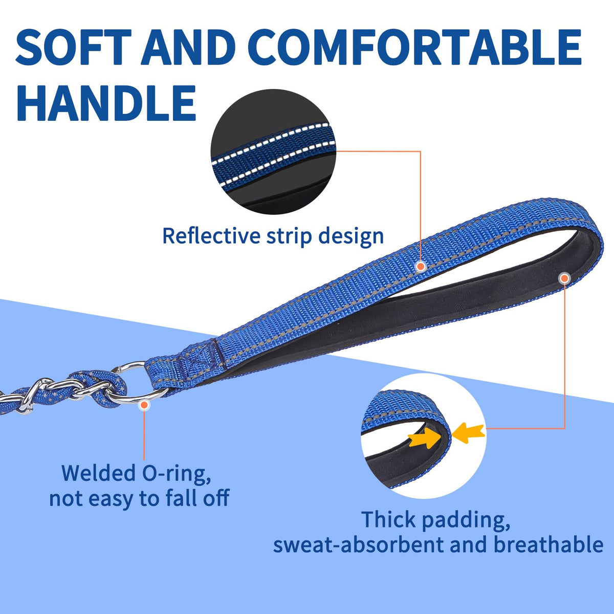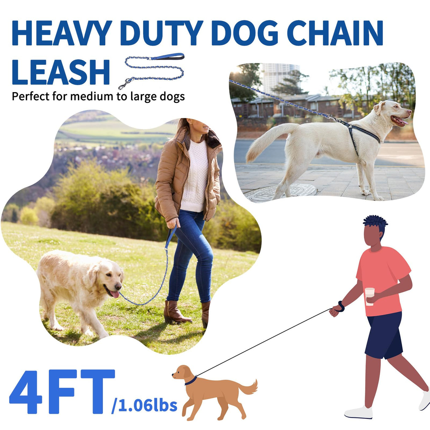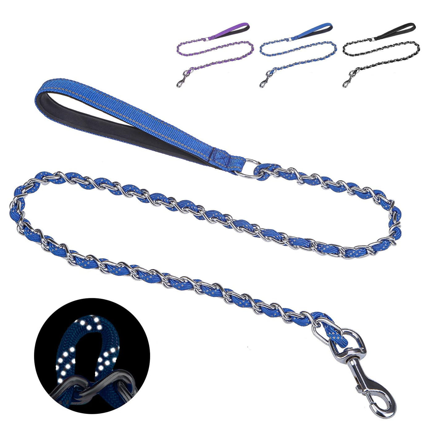 Homimp Heavy Duty Chew Proof Leash 4 Ft, Reflective For Medium Large Dogs, Metal Training With Soft Padded Handle, Strong Rope F