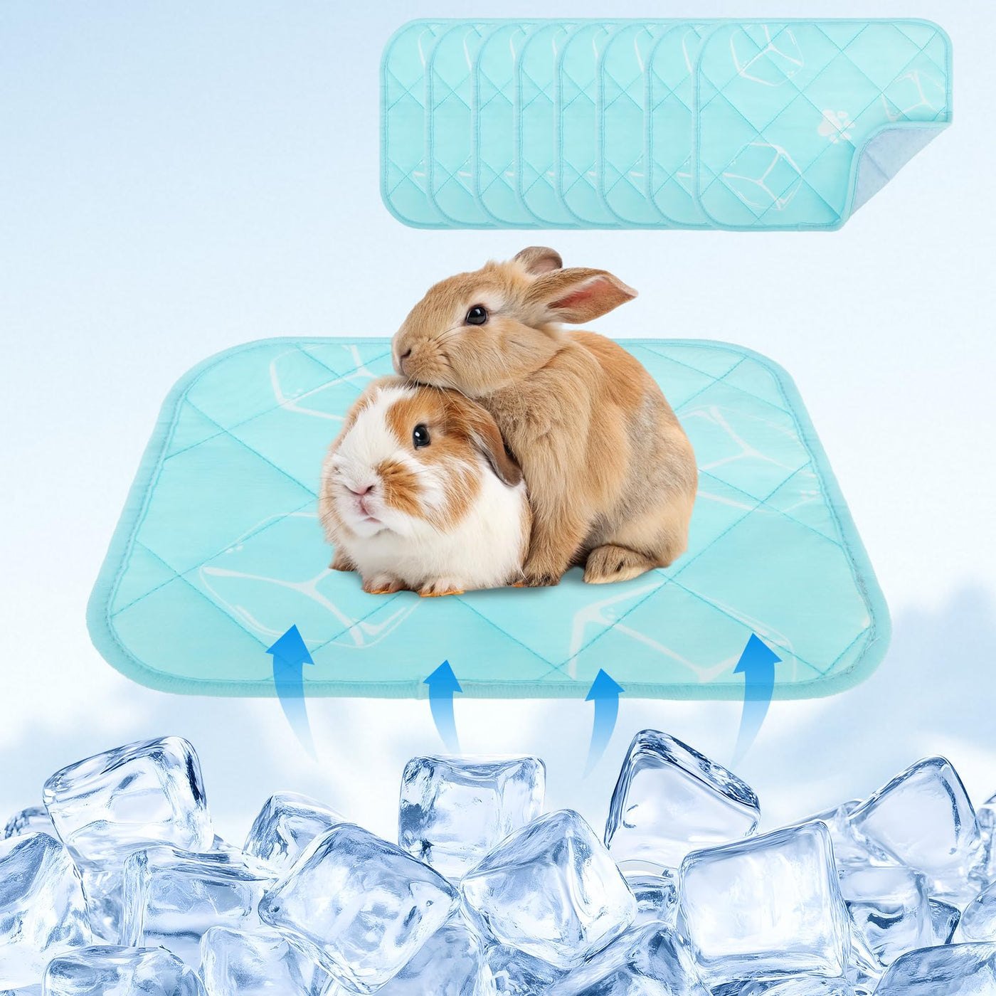 Homimp Summer Cooling Mat for Small Animals, 8PCS Guinea Pig Cage Liner Hamster Pee Pad, Washable Rabbit Cool Pad, Breathable Be