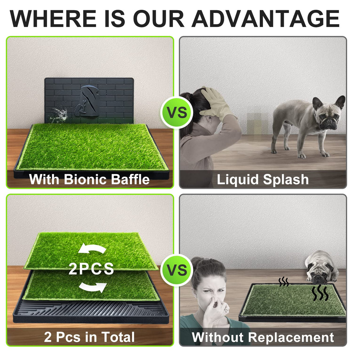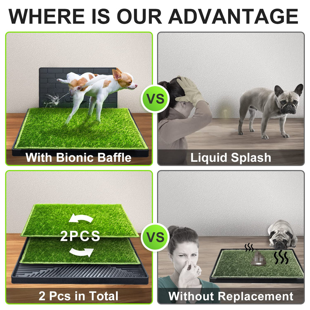 Hompet Dog Potty For Indoor Or Porch, 2 Pcs Artificial Grass Training Pads With Pee Baffle, Reusable , Alternative To Puppy Pads, Portable Dog Litter Box For Small/Medium Dogs