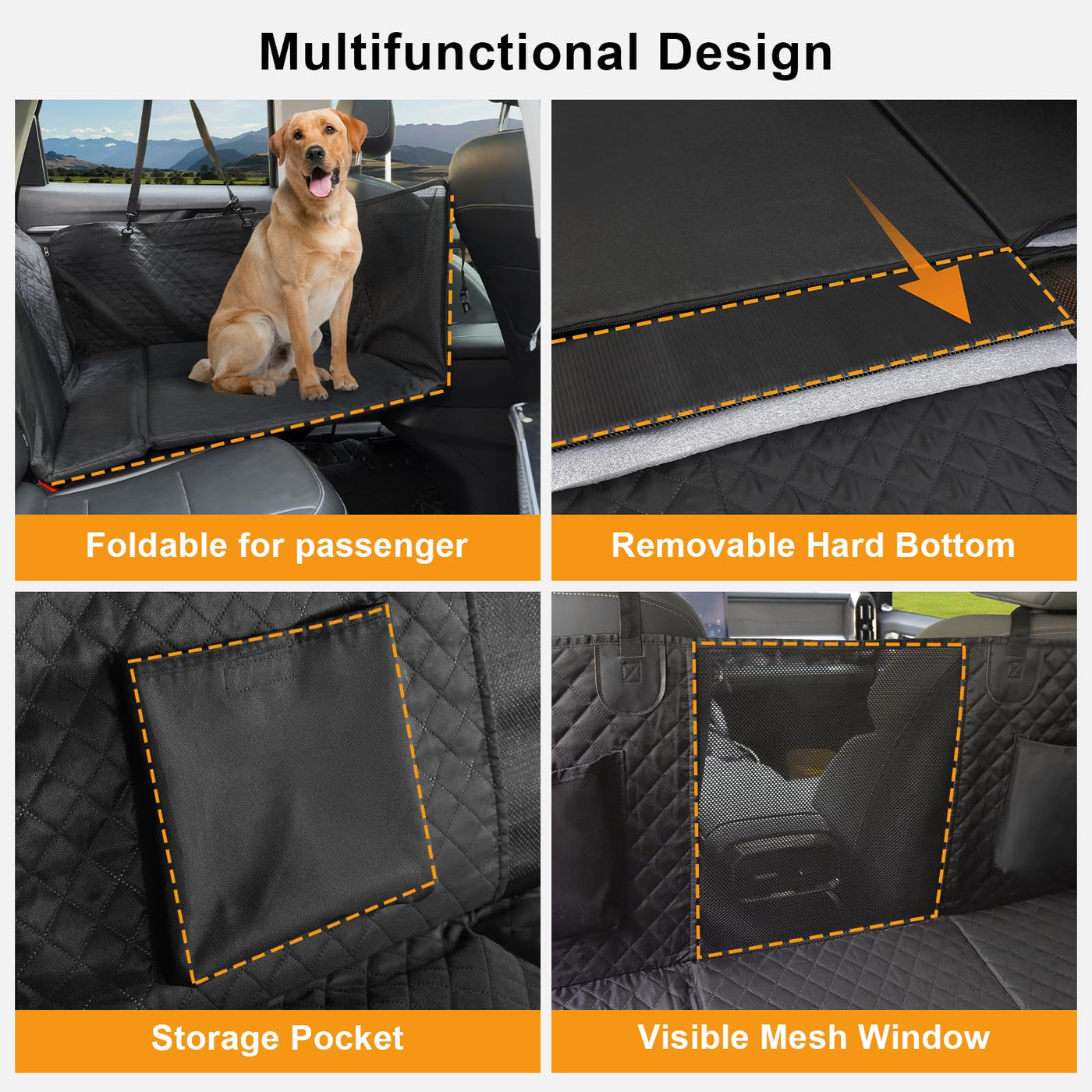 Introducing Our Pet Cruiser Hard Bottom Car Seat, Designed To Ensure Comfort And Protection For Your Furry Friend And Your Car. This Dog Hammock For Car Hard Bottom Offers Large Space For Your Pet To Relax, With Sturdy, Waterproof, And Scratch-Resistant Materials That Guard Against Spills, Hair, And Dirt. Its Incredibly Easy To Clean - Just Wipe With A Damp Cloth Or Machine Wash. The Non-Slip Backing Keeps It Securely In Place, While The Convenient Storage Pockets Hold Toys And Treats. Ideal For Any Adventure, Our Dog Car Seat Covers Makes Traveling With Your Pet Hassle-Free And Enjoyable.