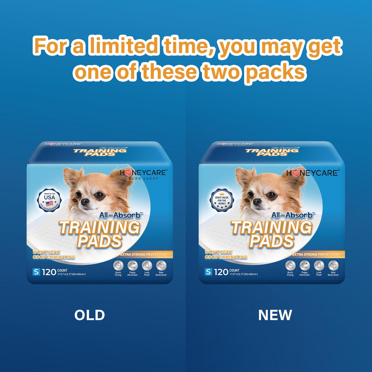 Honey Care All-Absorb, Small 17.5' X 23.5', 120 Count, Dog And Puppy Training Pads, Ultra Absorbent And Odor Eliminating, Leak-Proof 5-Layer Potty Training Pads With Quick-Dry Surface, Blue, A05