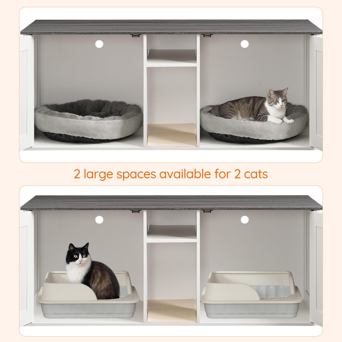 HOOBRO litter box Enclosure seamlessly blends pet comfort with home aesthetics. Its stylish, unique design, paired with soft hues, infuses modern elegance into your living space. Built on a dual-space concept, it serves as both a private bathroom and a cozy lounge area for cats. This multi-functional piece not only enhances home practicality but also elevates overall beauty, creating harmony between your home and beloved pets.