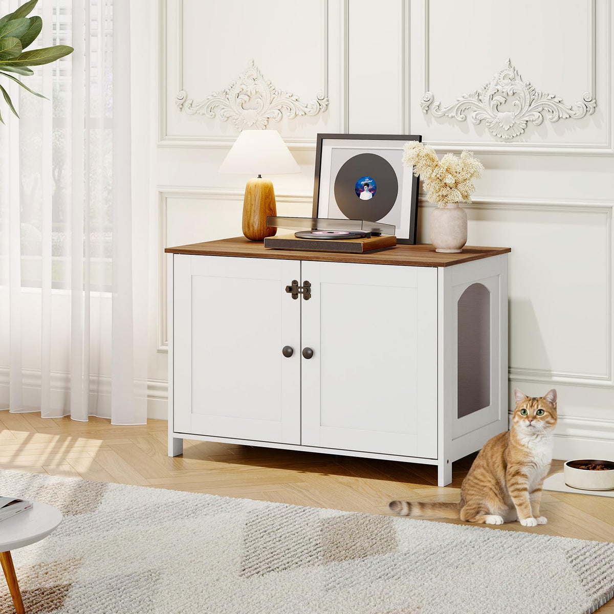 HOOBRO Litter Box Enclosure, Cat Litter Box Furniture with Removable Divider, Hidden Litter Box Furniture, Wooden Cat House, End