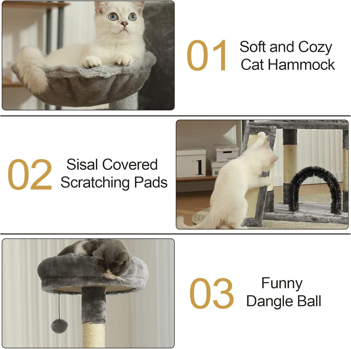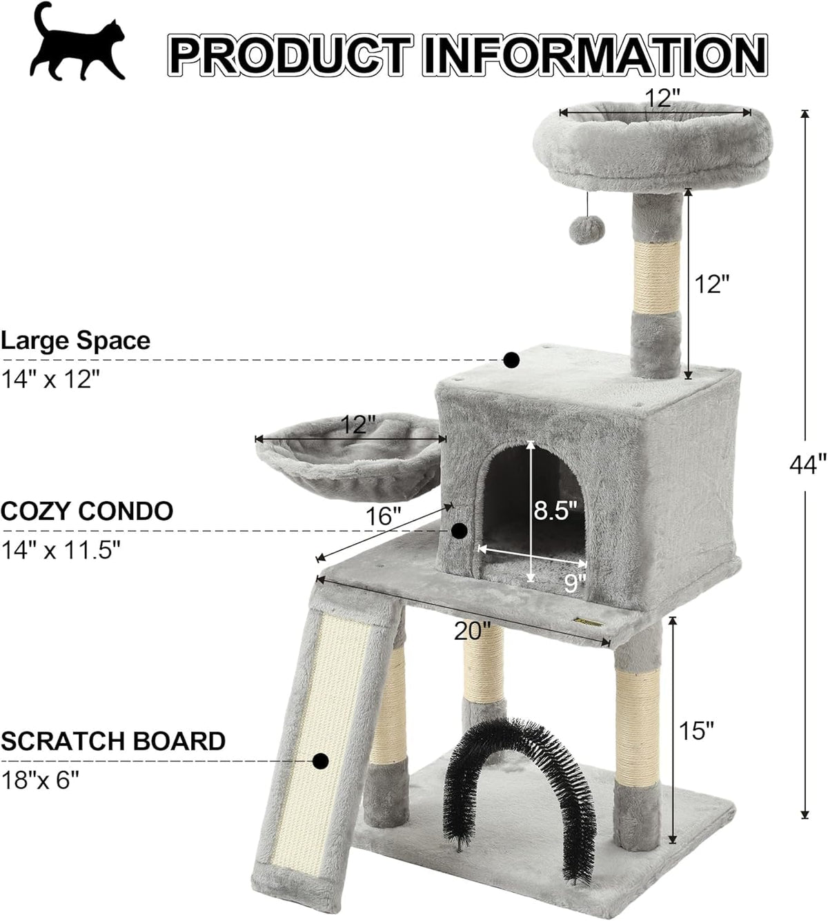 Give Your Cat The Perfect Play & Rest Space! Our 44-Inch Multi-Level Cat Tree Is Designed To Provide Your Feline Friend With Everything They Need-A Cozy Condo For Napping, A Soft Hammock For Lounging, Sturdy Scratching Posts For Claw Care, And A High Perch For Bird-Watching. Why Choose This Cat Tree? Sturdy & Safe - Unlike Flimsy Cat Towers That Tip Over, Our Weighted Base And Solid Construction Keep It Stable, Even For Active Cats. Space-Saving - Ideal For Small Homes And Apartments, This Cat Tree Offers Vertical Play Space Without Crowding Your Floor. Built To Last - The Steel-Framed Hammock Wont Sag, And The High-Quality Sisal Rope Resists Fraying, Ensuring Long-Term Use. Happy & Healthy Cat - The Built-In Grooming Brush Helps Reduce Shedding, While The Dangling Ball Encourages Exercise And Play. Hassle-Free Setup - No Complicated Tools Needed! Just Follow The Simple Instructions, And Your Cats New Favorite Spot Will Be Ready In 15 Minutes. Perfect For All Cats! Whether You Have A Kitten, Adult Cat, Or Senior Feline, This Cat Tree Provides Comfort, Entertainment, And Security-Helping Them Stay Active And Relaxed. Order Now And Give Your Cat The Ultimate Climbing And Scratching Paradise!