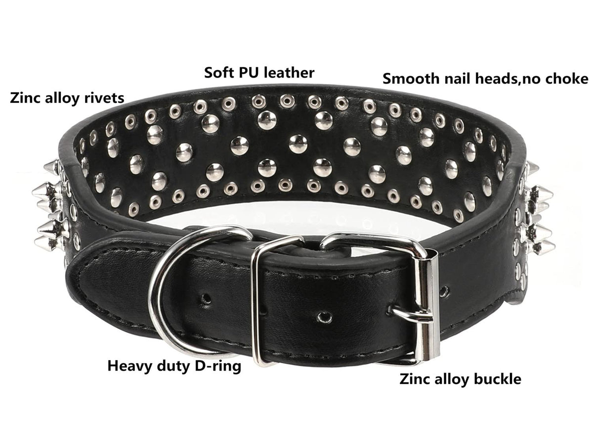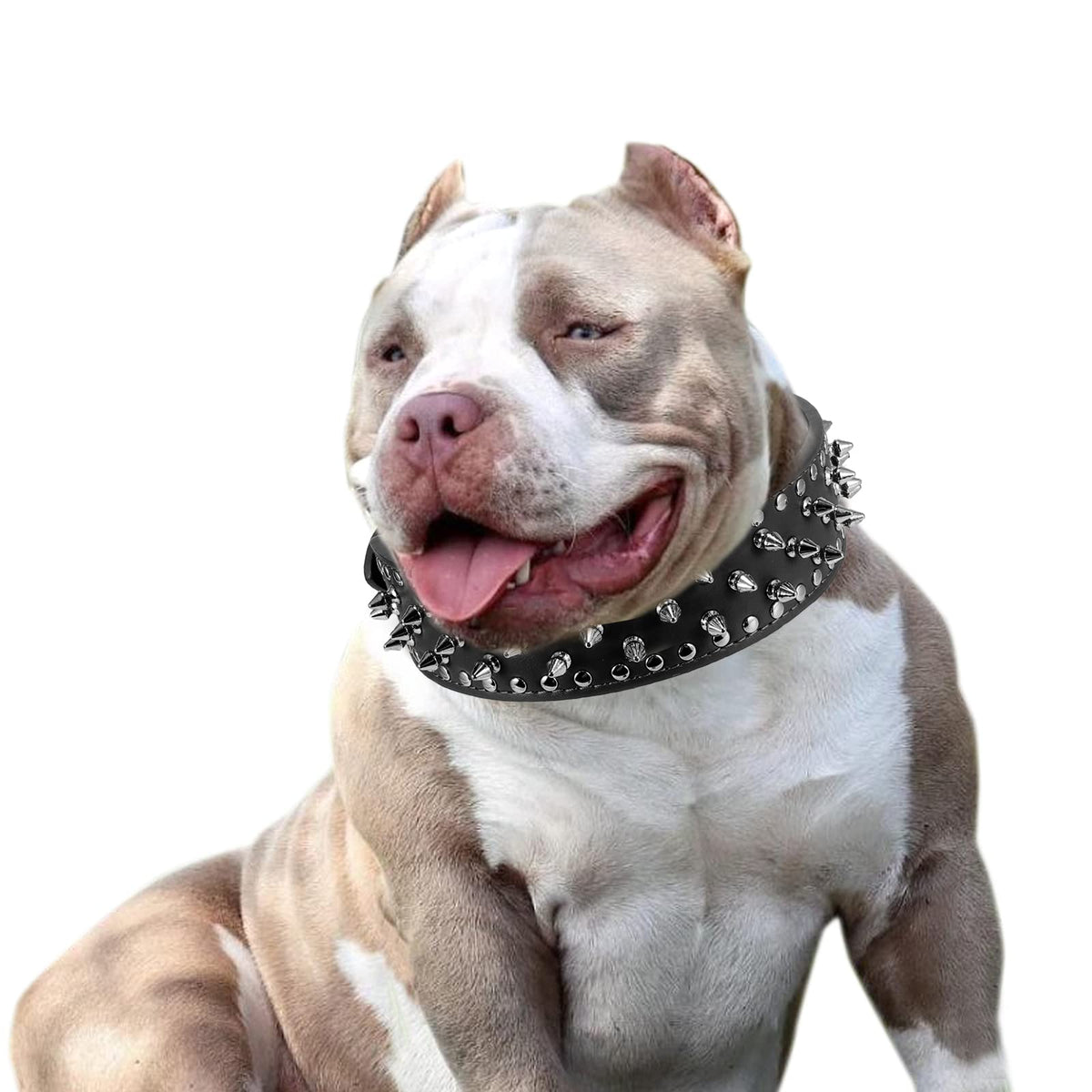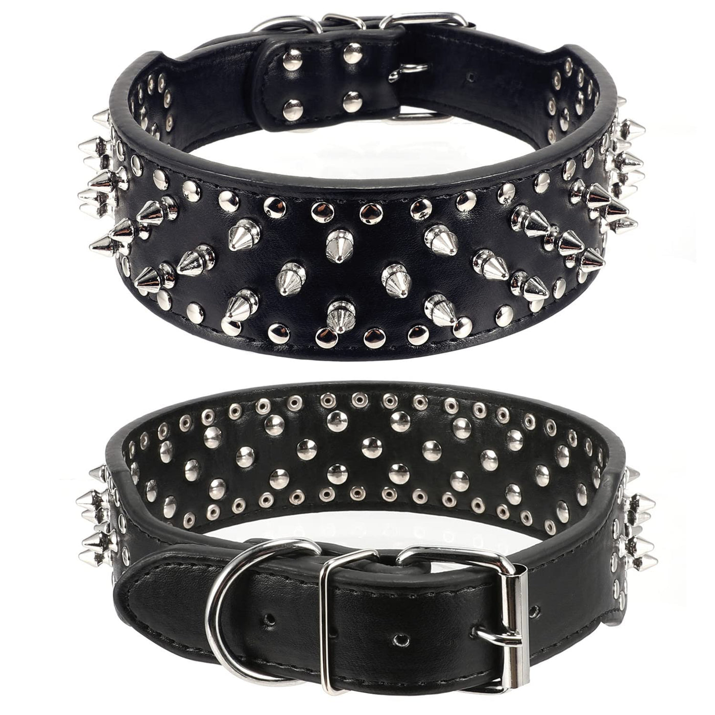 Hoot Pu Leather Adjustable Spiked Studded Dog Collar 2'' Wide 37 Spikes (M(Neck 19''-22''), Black)