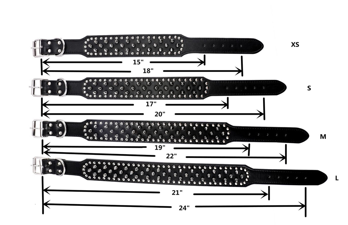 Features: 1.Material: Pu Leather 2.Adjustable Dog Collar 3.Color:Red Black Blue Pink Rose Red White Light Brown White Pink Leopard Purple Golden Brown Dark Brown Camouflage 4.Size Xs:2.0''*20''(5Cm*51Cm), Neck 15-18''(38-46Cm) S:2''*22''(5Cm*56Cm), Neck 17-20''(43-51Cm) M:2''*24''(5Cm*61Cm), Neck 19-22''(48-56Cm) L:2''*26''(5Cm*66Cm), Neck 21-24''(53-61Cm)