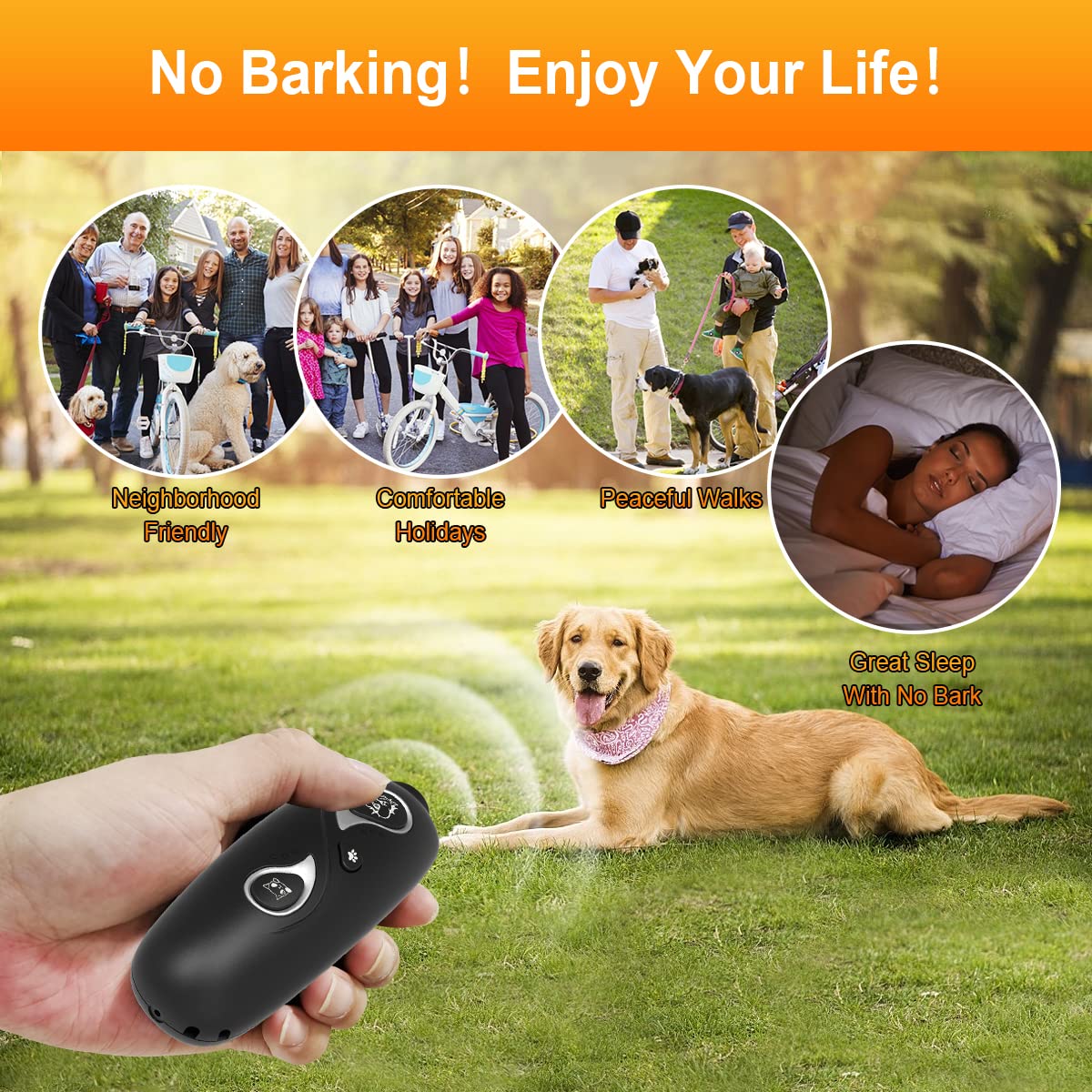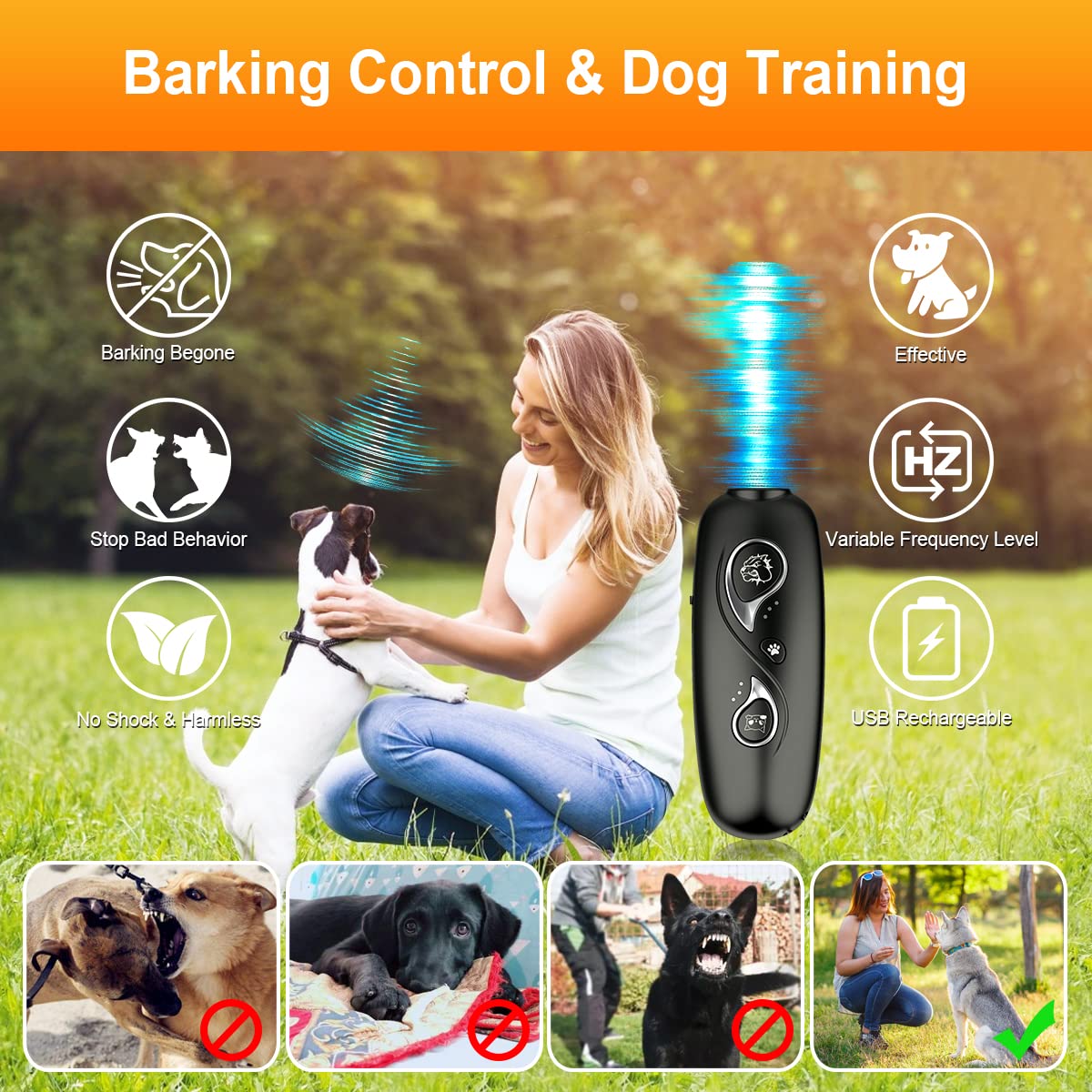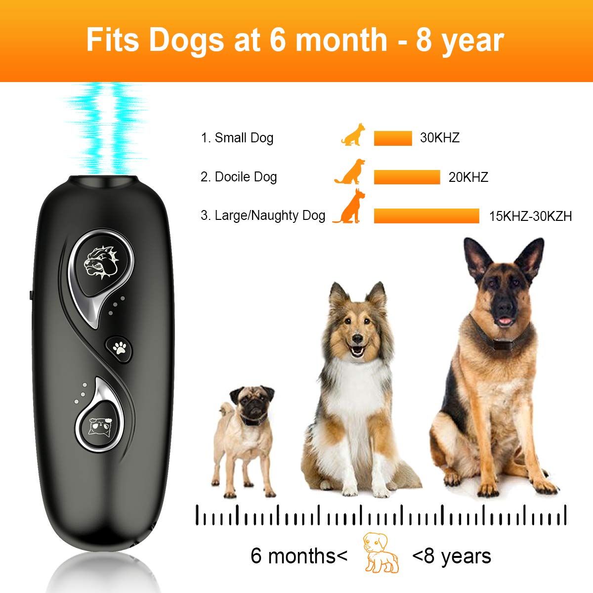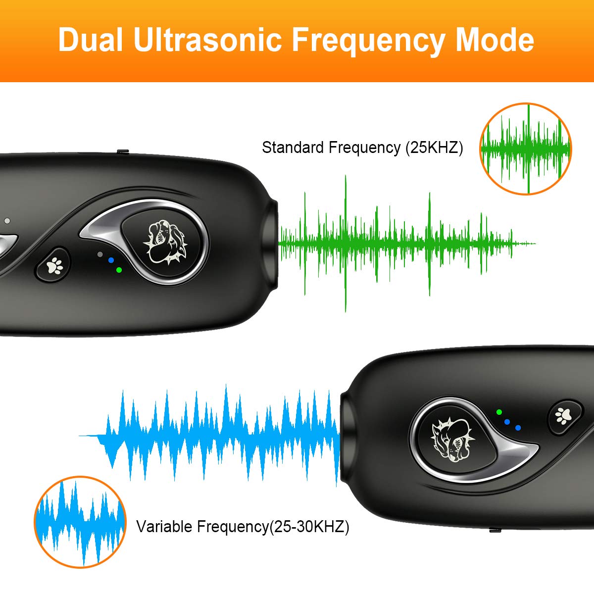 ?Improve The Efficiency Of Trainning Dog?The ultrasonic bark control device combines dog training and bark control. which can effectively trains your dogs to stop unwanted behaviors barking digging eat something dirty or fight. | ?Safe To You And Dogs?Average human hearing frequency range is 20HZ~20KHZ and the dog can hear a wider range from 15HZ to 120KHZ. our ultrasonic barking control emits ultrasonic sound at 25KHZ-30KHZ that only dogs can hear so the sound doesn