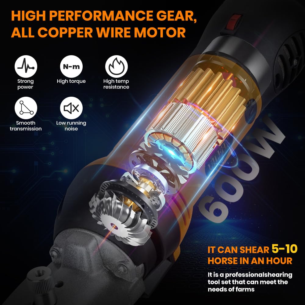 Horse Clippers Professional Electric Horse Grooming Kit, Shaving Equine Clippers For Horses Goat Cattle Thick Coat Animals, 6 Sp