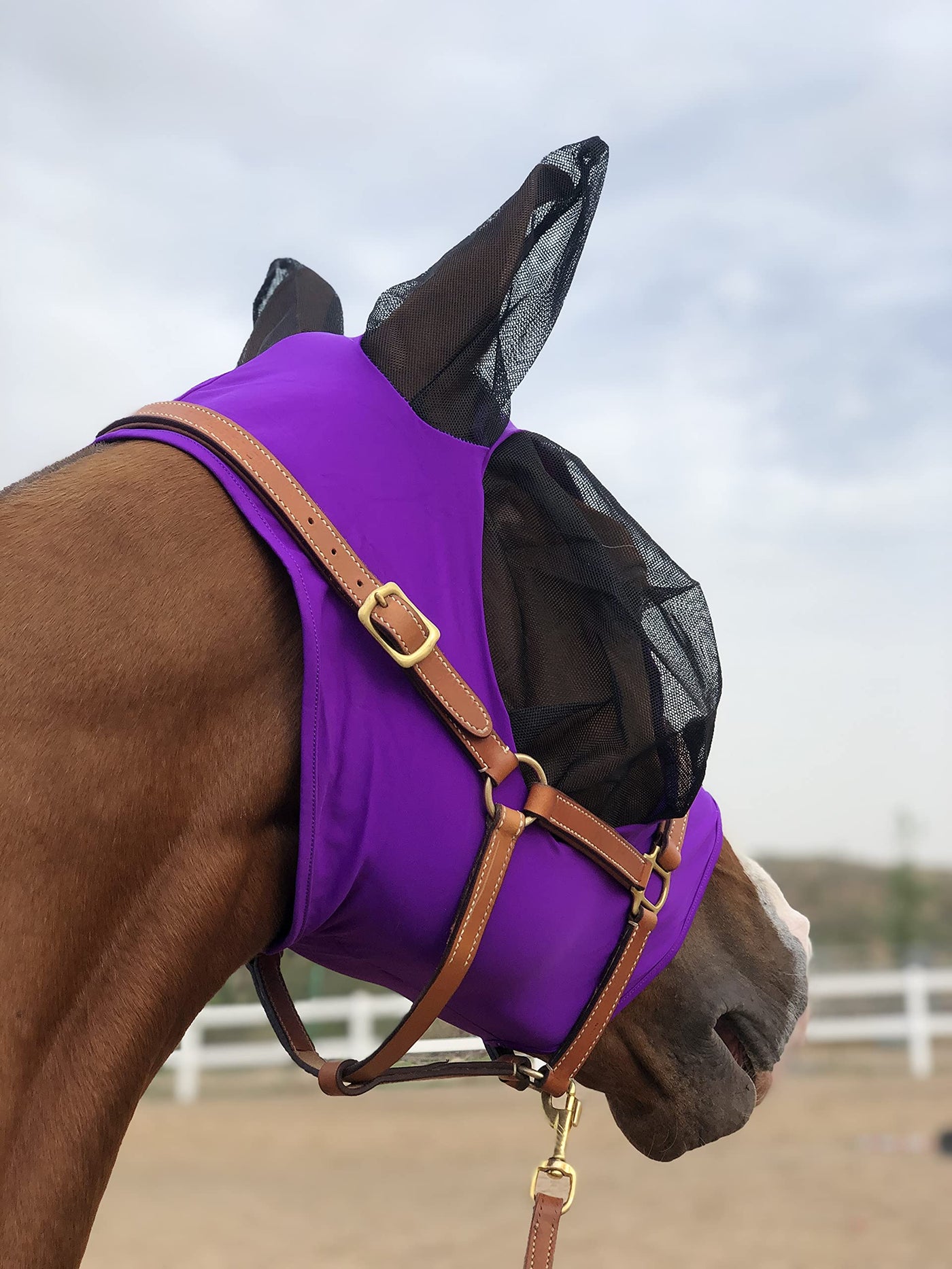 Horse Fly Mask Super Comfort Horse Fly Mask Elasticity Fly Mask with Ears We Only Make Products That Horses Like (Dk Purple, M)
