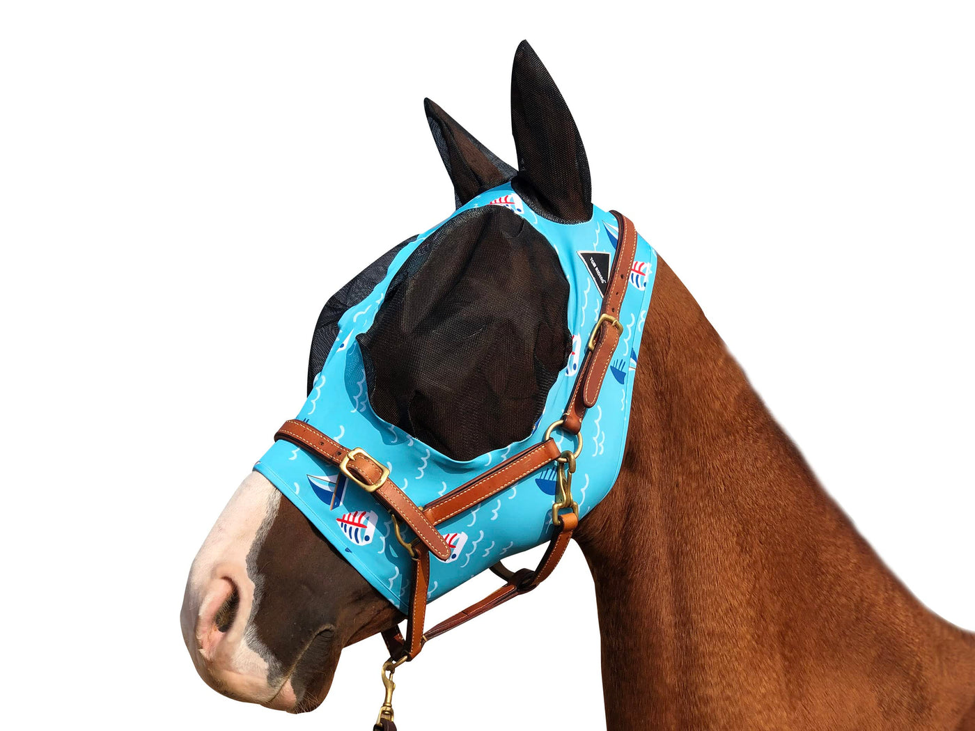 Horse Fly Mask Super Comfort Horse Fly Mask Elasticity Fly Mask with Ears We Only Make Products That Horses Like (Sky Blue, L)