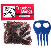 Horse Mane Braiding And Banding Bundle - Mane/Tail Rubber Bands, Braid Aid Braiding Comb (Brown)