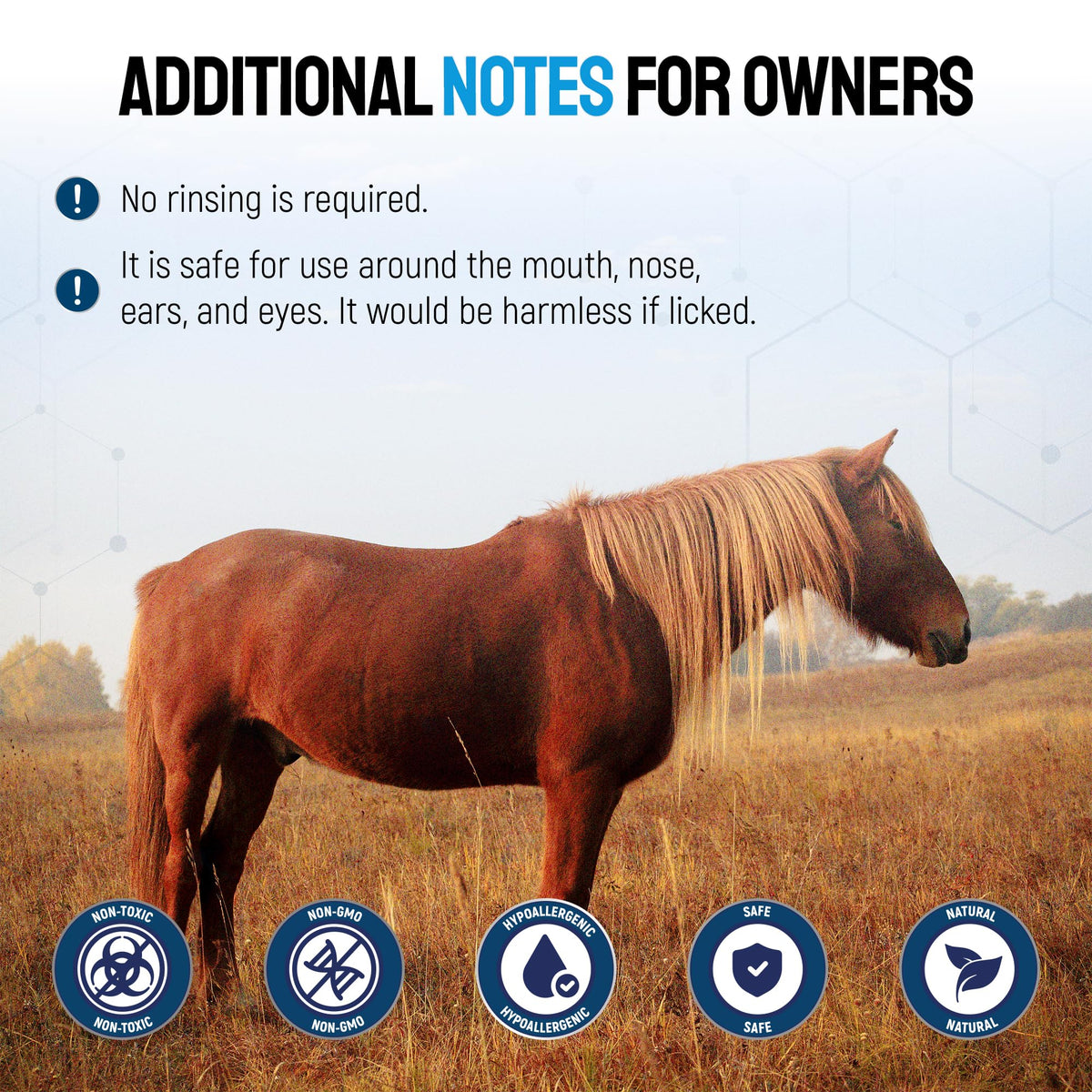 Hey! We know how to help your beloved horse! Our Wound Spray 4 oz is crafted to help with wounds, scratches, cuts, abrasions, sores, bites, post-surgical sutures, itching, hot spots, and skin irritation! ? Our pet wound spray works gently and quickly to keep the skin in optimal condition. Its safe for use around sensitive areas such as the mouth, nose, ears, eyes, and feet, and its harmless if licked. What about the ingredients? Main (per 1 ml): Silver (as colloidal nano silver) 50 ppm. Other: Deionized water. ??How to use this spray for horses? 1. Clean the injured area. 2. Shake the bottle, adjust the spray nozzle, and apply the spray directly to the affected area. *Use 2 sprays to clean the wound area. **Use 4 sprays for deep tissue action. ?Note! More sprays can be used if necessary. No rinsing is required. It is safe for use around the mouth, nose, ears, eyes, and feet. It would be harmless if licked. ?No GMOs, no artificial colorants! ? Non-burning, non-irritating formula - safe for everyday use! ??Shine bright, beloved pet! - Exceptional silver care!