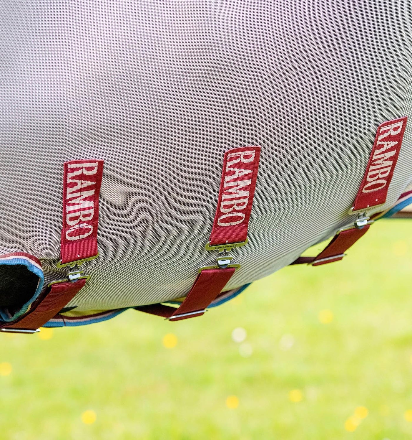 The Rambo Protector Fly Sheet w/ Disc Front Closure (0g Light) is our most durable fly and UV protective performance mesh fly sheet. Incorporating our lightweight disc-front closure to the front for an ultra-lightweight and secure fit, this fly sheet gives outstanding protection against UV rays and fly and insect disturbance so that your horse can enjoy field time in peace, and you can enjoy your day without worrying about your horse. The detachable extended close contact hood shape delivers an improved fit, and comprehensive chest coverage. Comfort is further extended with our dual leg arched design and disc front closure system, which help alleviate pressure points and allow for greater freedom of movement. A super-sized tail flap embraces an anti-rub silky lining, also found on the neck and shoulder which keeps your horses tail in excellent show condition. This fly sheet features a tail cord for added security. The generous belly coverage adopts Velcro closures, further reinforced by three straight surcingles for a snug fit. Compatible with our Waterproof Fly Rug Liner to offer a breathable and waterproof combination to keep your horse protected from horseflies and other annoying insects, and comfortable whatever the summer weather decides to do!