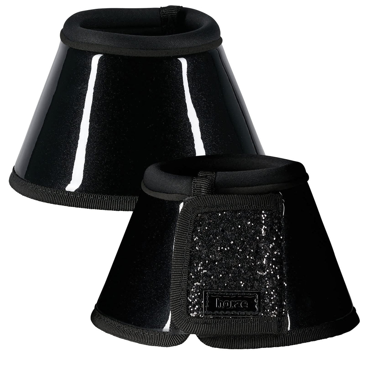 Brighten up your horse tack! These new bell boots protect your horse's legs in the most stylish way. The durable outer material is long-lasting and the lining is made from elastic neoprene. Strong hook-and-loop fasteners keep the boots in place. They are coated in glitter material for a sparkly look. Pair with the matching brushing boots (#19105) for a full look.