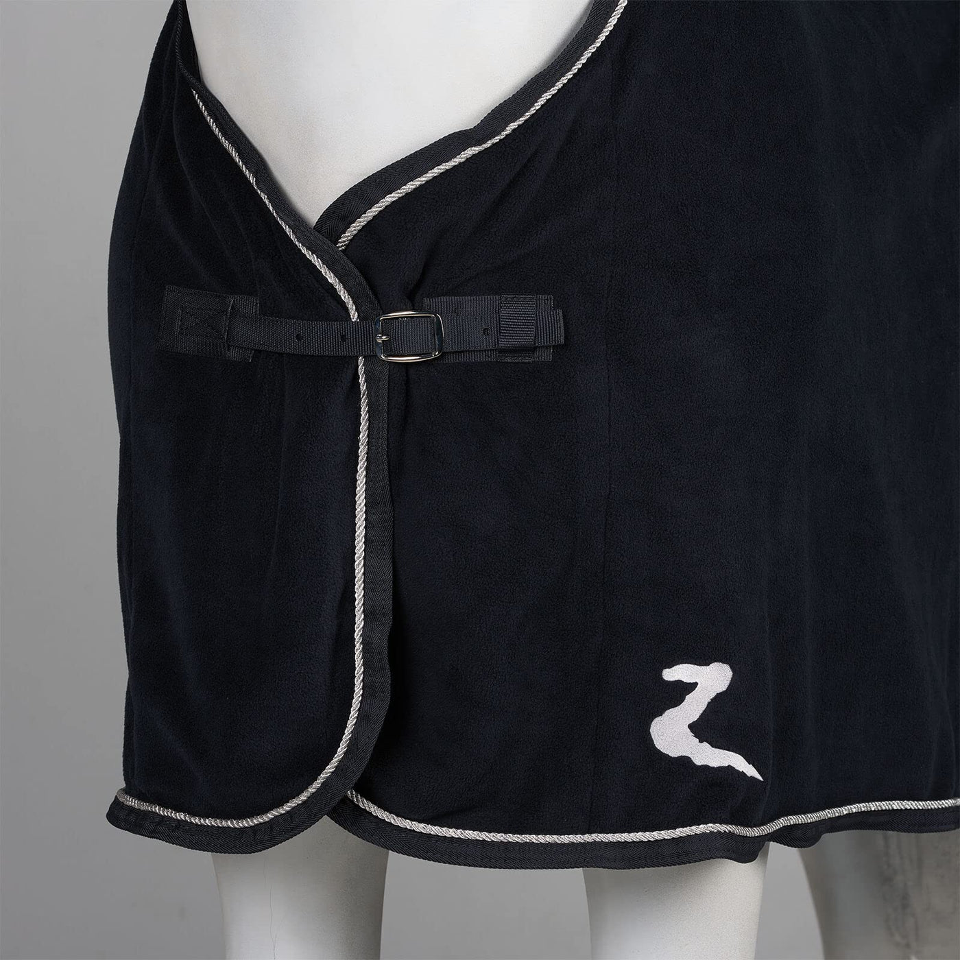 The classic design of the Horze Fleece Show Cooler looks gorgeous yet won't break the bank. This cooler is designed with rich piping and elegant cording that gives it a sophisticated look while keeping the chill away. Whether you're waiting ringside or cooling out after a workout this fleece cooler will be your go-to layer. Polyester fleece.