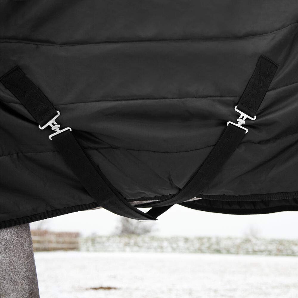 Q: How does the design of the HORZE Nevada Blanket ensure a secure fit?A: This blanket is designed with double cross surcingles, which help to keep it securely in place, preventing any shifting or slipping while your horse is wearing it.