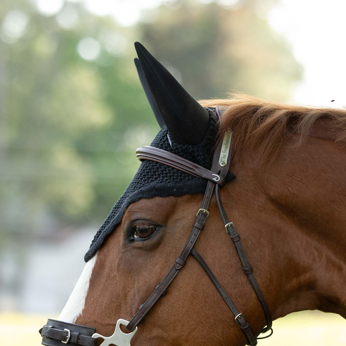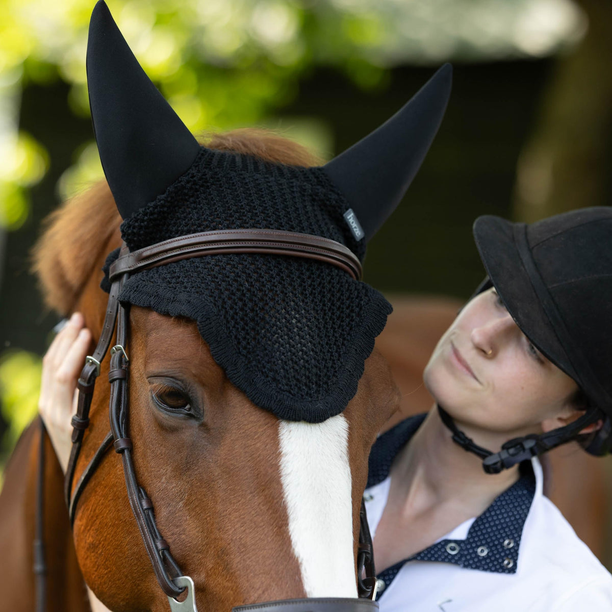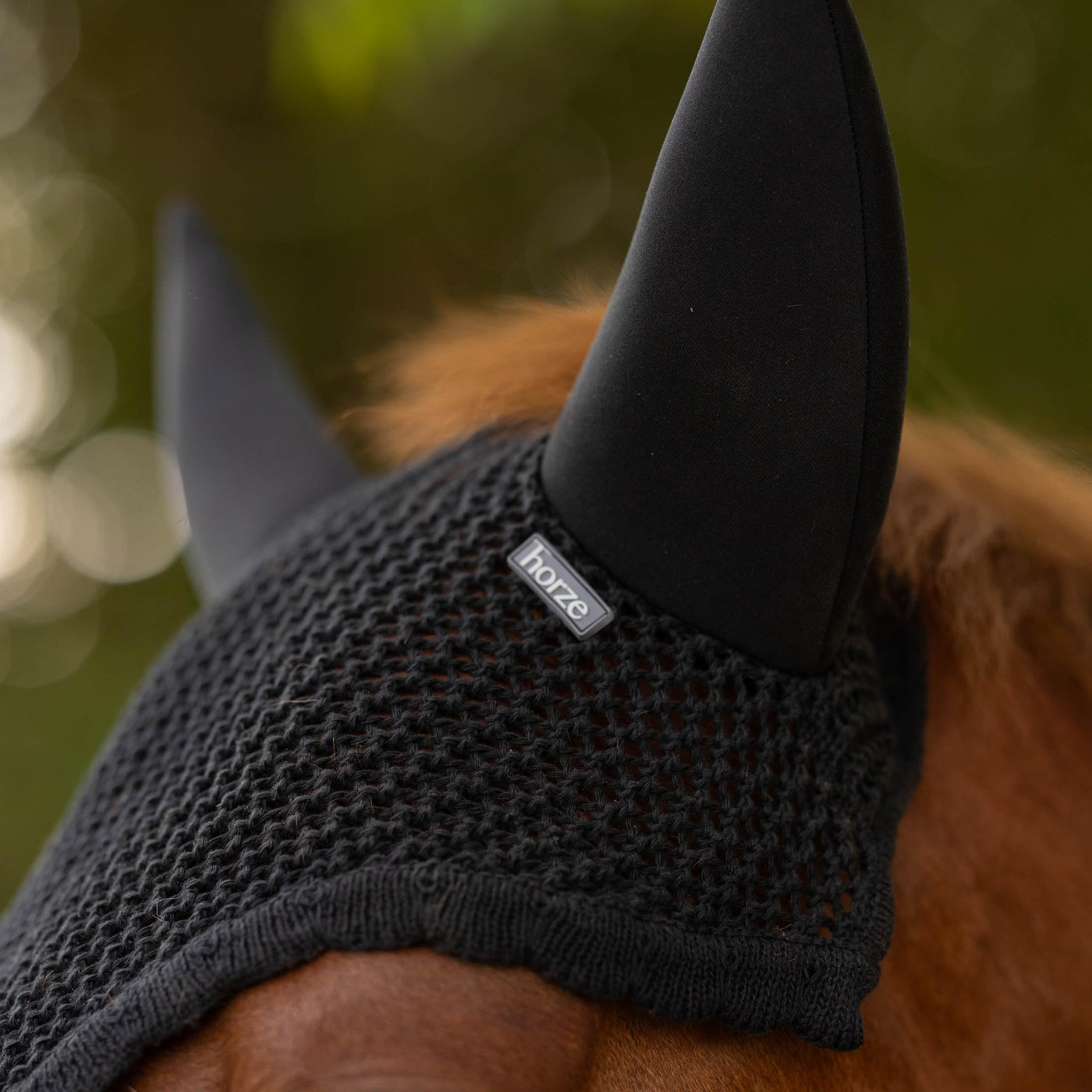 HORZE Supreme Silent Crochet Ear Bonnet - Sound Dampening Fly Protection for Sensitive Horses - Black - Horse